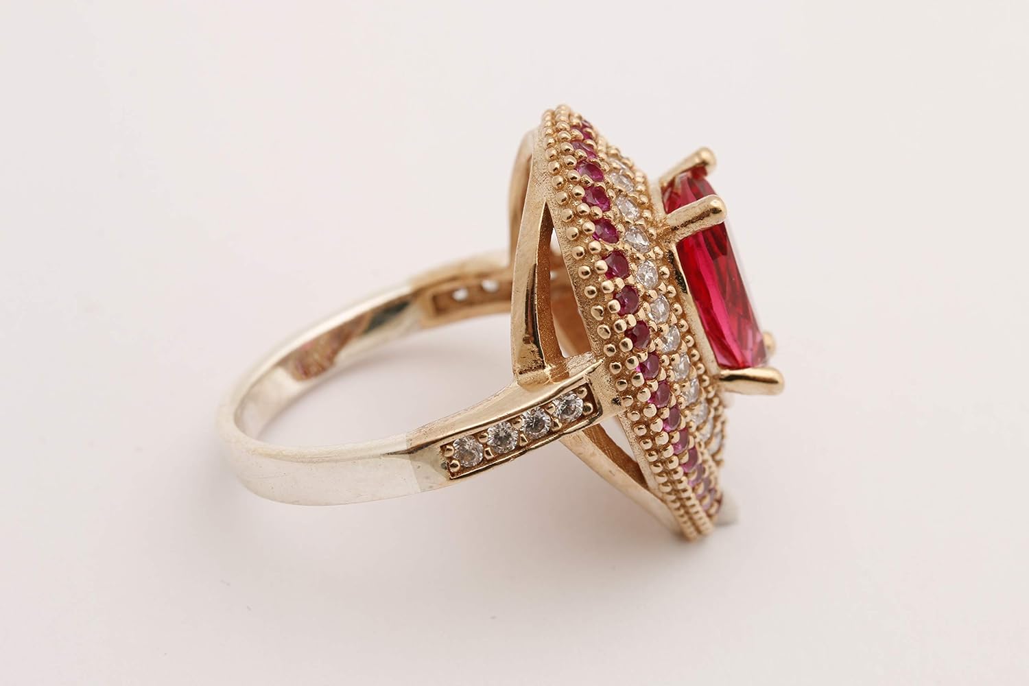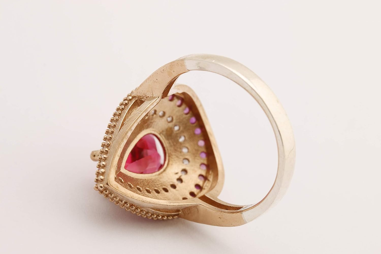 Stone : Pink Ruby and Topaz Stone Color : Pink Weight : 5.7 grams Size : 0.88 inch diameters Material : 925 K Sterling Silver and Bronze Production : Fully Handmade Elevate your style with our Handmade Turkish Authentic Jewelry Round Shape Cut Topaz 925 Sterling Silver Band Ring. Crafted with precision by skilled Turkish artisans, this exquisite ring exudes authenticity and traditional craftsmanship. Adorned with round-cut topaz stones, the ring boasts a captivating design combining elegance and sophistication. The vibrant hues of the gemstones are beautifully complemented by the lustrous 925 sterling silver band, adding a touch of luxury to any ensemble. This stunning ring is a fashion statement and a meaningful gift for the special woman in your life. Whether it's a birthday, anniversary, or any other occasion, this ring is sure to delight and impress. Available in various sizes, it ensures a perfect fit for every wearer. Make a statement of elegance and beauty with our Handmade Turkish Authentic Jewelry Round Shape Cut Topaz 925 Sterling Silver Band Ring. Add it to your collection or gift it to someone special to cherish for a lifetime. This description highlights the craftsmanship, design, materials, versatility, and suitability as a gift for women.