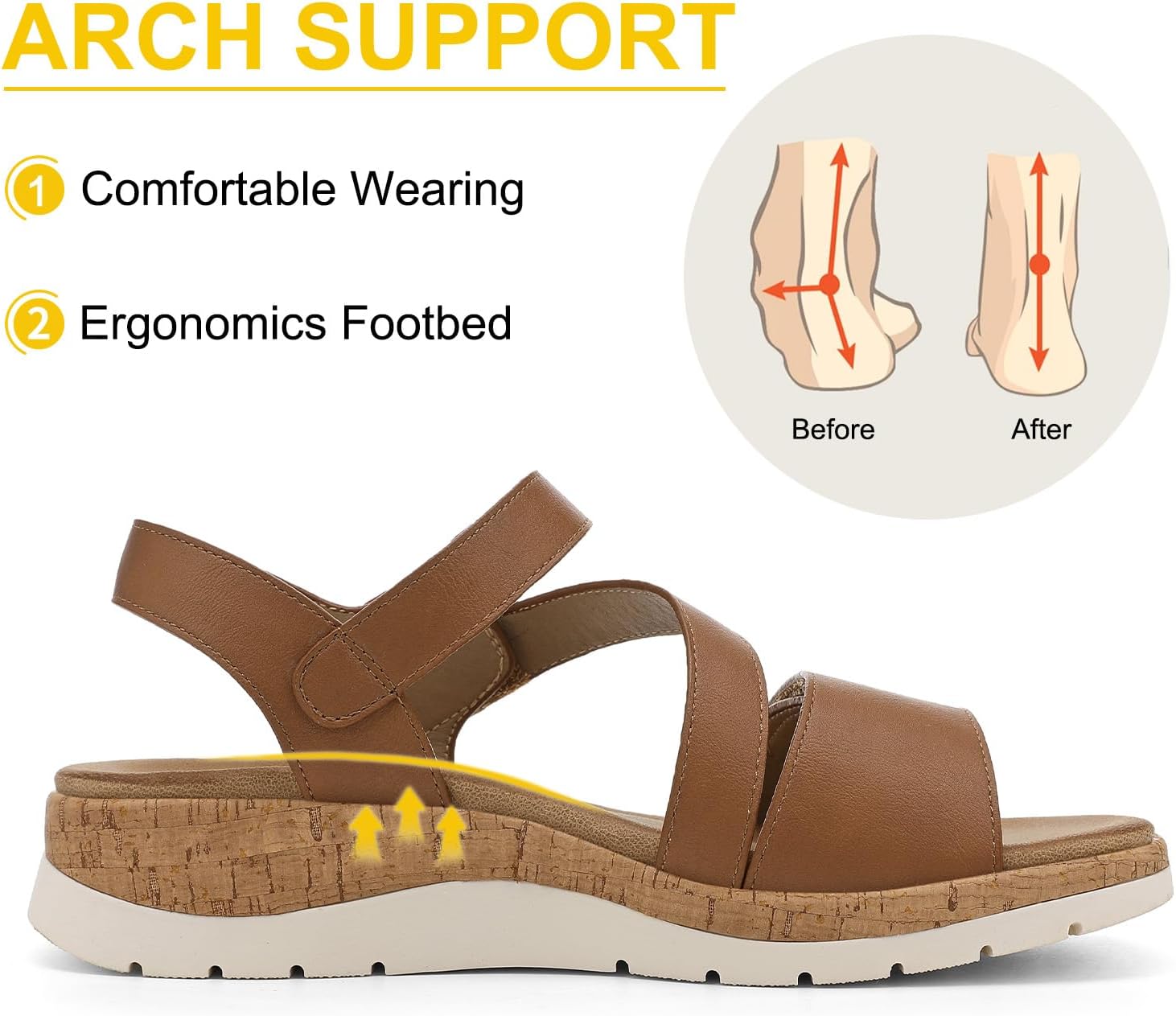 UBFEN Womens Flat Sandals Arch Support Open Toe Walking Comfy Casual Low Wedge Summer Shoes