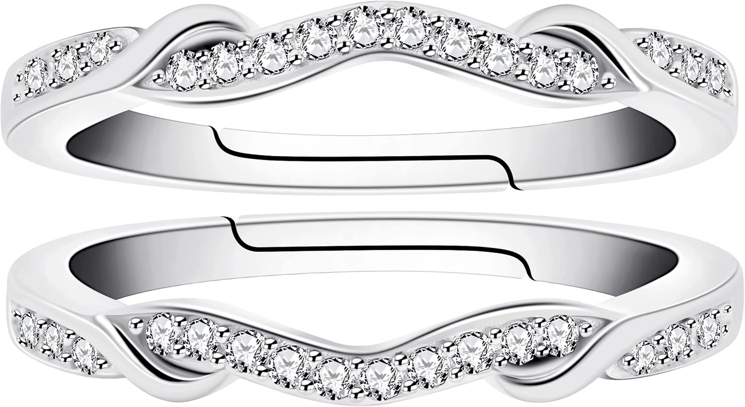 You are looking at gorgeous womens ring guard enhancer suitable for party/engagement/wedding/mothers day/friendship and anniversary. Featured as 2 pcs set stacking ring enhancer, prong setted with round cut high quality white cubic zirconia stones. Gift bag will be included. Product feature: 1.Main stone: AAA+ cubic zirconia stones. 2.Metal material: 925 sterling silver. 3.Packing by adorable gift bag. 4.Intended use: party, wedding, engagement, valentines-day, anniversary, birthday,and christmas.