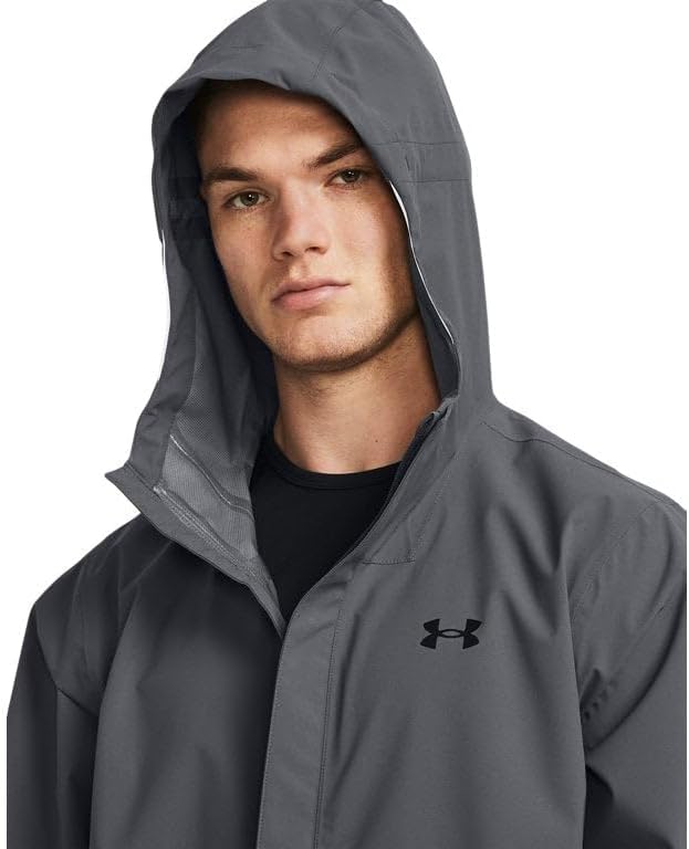 Introducing the Under Armour Men's UA Stormproof Cloudstrike Stretch Jacket, a perfect blend of comfort, style, and high performance. This jacket is a testament to the modern advancements in apparel technology, offering exceptional protection from the elements while ensuring maximum breathability and flexibility. Made with our unique Cloudstrike fabric, this jacket is not only waterproof and windproof, but also durable and stretchy. This means that no matter what the weather throws at you, you can continue to train and perform at your best without any limitations. The fabric has been treated with our exclusive UA Storm technology to repel water effectively without compromising the breathability of the garment. Our Cloudstrike Stretch Jacket is designed with a 100% waterproof, breathable, and stretchy 2.5-layer bonded fabric that comes with fully taped seams. This ensures that the jacket can withstand heavy rains and harsh winds while keeping you comfortably dry on the inside. The 4-way stretch material allows for better movement in every direction, adding to the overall comfort and functionality of the jacket. The jacket features a full zip front with a Storm flap to further enhance its weather-proof capabilities. It also comes with secure, zip hand pockets and can be fully packed into the right-hand pocket for convenience. The dropped, shaped hem with a bungee adjust, an adjustable hood, and elastic cuffs ensure a secure fit, keeping you protected in all conditions. The Under Armour Men's UA Stormproof Cloudstrike Stretch Jacket adopts a loose fit, providing a fuller cut for complete comfort. This jacket uses a fluorine-free water repellent treatment, demonstrating our commitment to sustainable practices. It also holds a 10k/10k rating, indicating its superior waterproof and breathability performance. This jacket, made from 100% Polyester, is easy to care for. It should be washed and dried zipped up, and can be machine washed cold with like colors