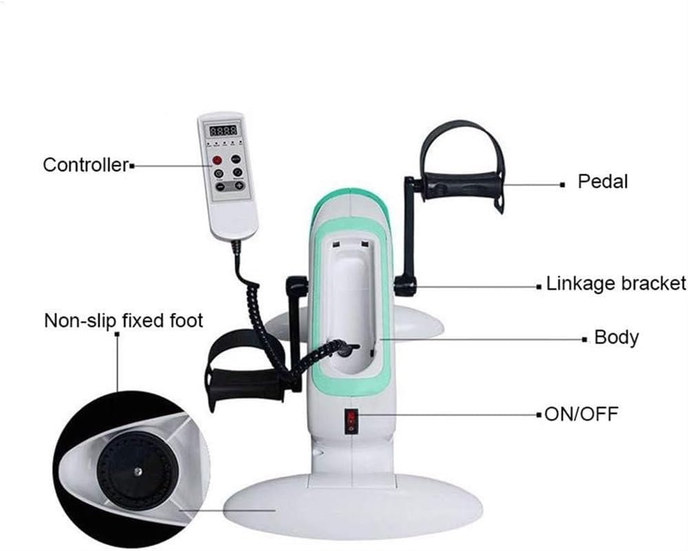 This motor-assisted bike provides low-impact exercise, perfect for working out while you work, relax in front of the TV, read, or more.Adjustable speed settings (12 total) let you choose the perfect pace to meet your goals, whether it's increasing blood circulation, strengthening muscles, and maintaining joint flexibility.Plus, if you decide you don't need the power assist anymore, you can turn it off for a purely manual workout.The built-in computer displays key stats about your workout, and the wired remote lets you adjust your workout without leaning into the screen.Characteristic:-Can be used to work both legs and arms-Motorized pedal action with 12 speed settings-Max speed: 80RPM-Suitable for hand use-Initial run time: 5 minutes-Adjust the training period from 1 to 15 minutes-5 built-in automatic programs-1 manual program-Built in computer-Non-slip pedals with straps-LCD displays scan, distance, time, calories, speed-Remote control cable