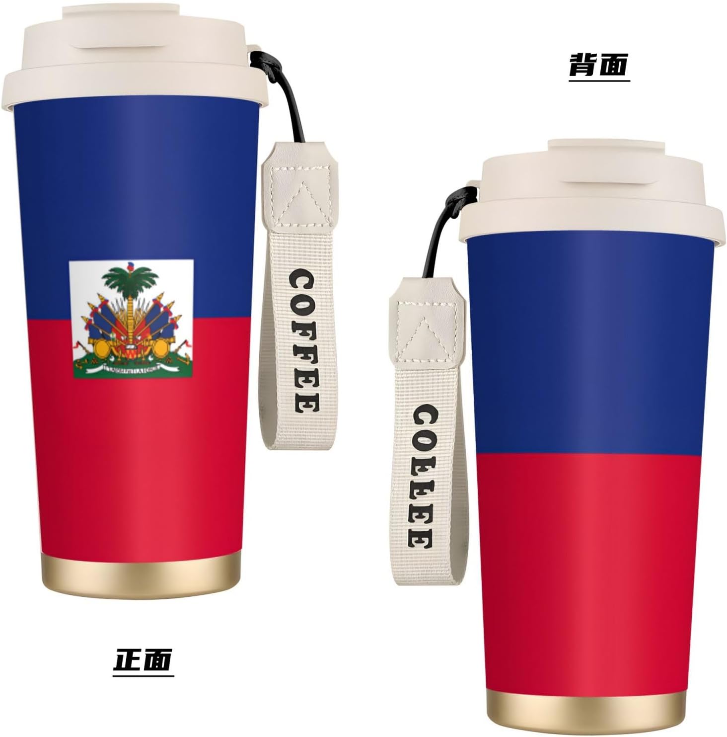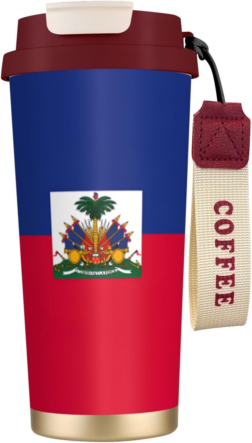 Haitian flag Experience the ultimate blend of style and functionality with our uniquely designed coffee mug. Perfectly suited for those who appreciate individuality, this 16 oz tumbler features a full-print, customized design that sets it apart from ordinary mugs. Made from top-grade 316 stainless steel on the inside and 201 stainless steel on the outside, along with a PP lid and straw, this mug is not only stylish but also incredibly durable.The superior insulation keeps your drinks at the desired temperature for more than 12 hours, ensuring you can enjoy your coffee, tea, or any other beverage no matter the weather. The ergonomic, tapered shape of the mug provides a comfortable and firm grip, making it easy to handle and carry. Whether you're on the go, relaxing at home, or working in the office, this versatile tumbler is the perfect companion.Additional features include a dual-drink lid, a convenient straw, and a sturdy nylon wrist strap for portability. The non-slip base adds an extra layer of security, keeping your drink stable on any surface. For cleaning, simply wash with water or wipe down; avoid using bleach or a dishwasher. Note that due to different measurement methods, a slight variation of 1-3 cm in size is considered normal.Make a statement with our unique, customized coffee mug, and elevate your drinking experience today!