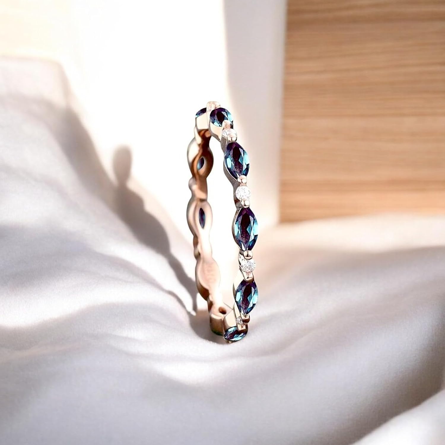 Unique Marquise Alexandrite Wedding Band, Full Eternity Rose Gold Moissanite Wedding Ring, Straight Row Custom Bridal Stacking Ring for Women - Vintage Dainty Promise Ring, Birthday Gift, Stackable Jewelry *Main stone: Alexandrite *Stone Shape: Marquise Cut *Stone Size: 4x2 mm