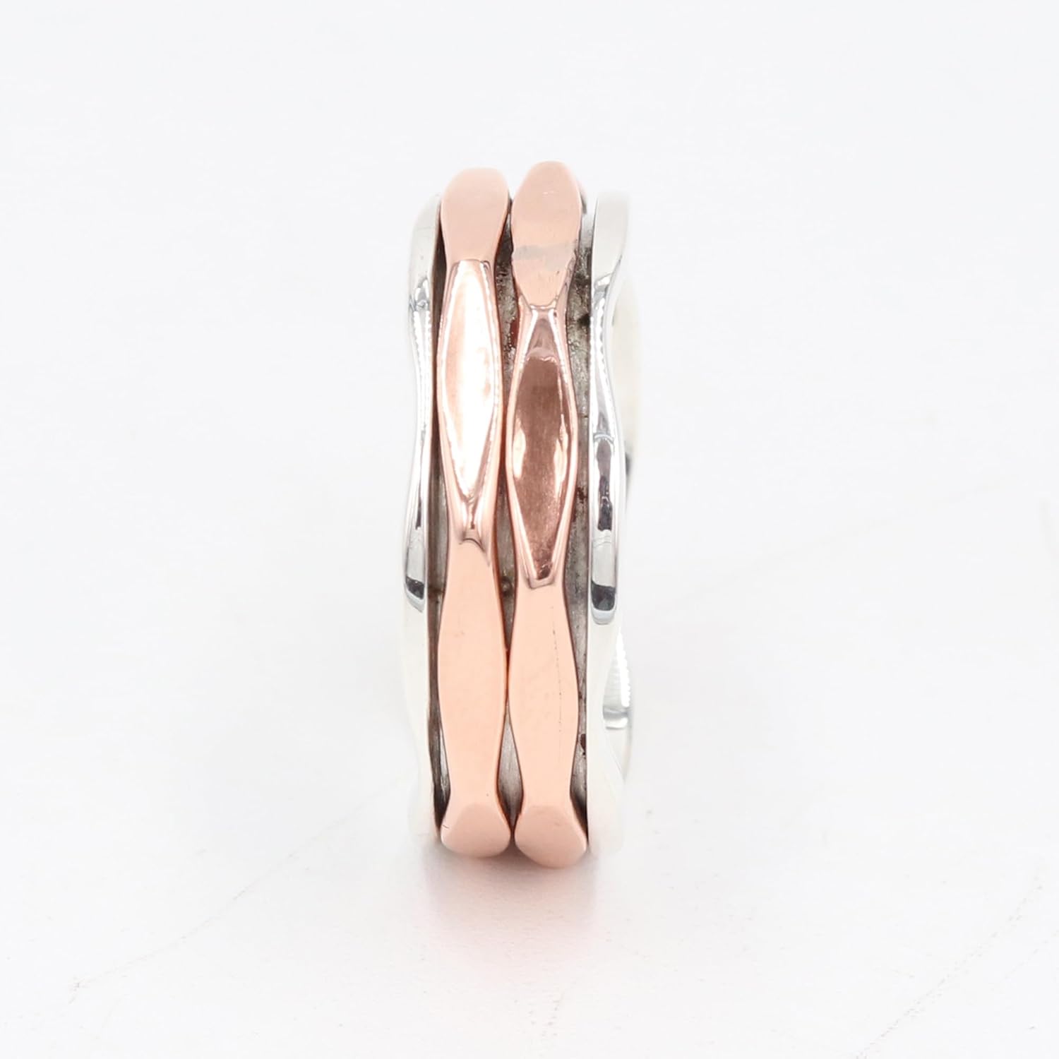 The JAY JOOLS Unisex Spinner Ring, expertly crafted from 925 sterling silver with a smooth copper fidget band. Designed for both men and women, this rotating ring helps relieve stress and anxiety while promoting mindfulness and focus during meditation or daily activities. The two-tone design combines modern elegance with functional craftsmanship, making it a versatile accessory for casual or formal wear. Comfortable, durable, and eye-catching, this spinner ring is perfect for everyday use. Ideal as a thoughtful gift for birthdays, anniversaries, or special occasions, it blends artisan quality with practical stress-relief functionality.