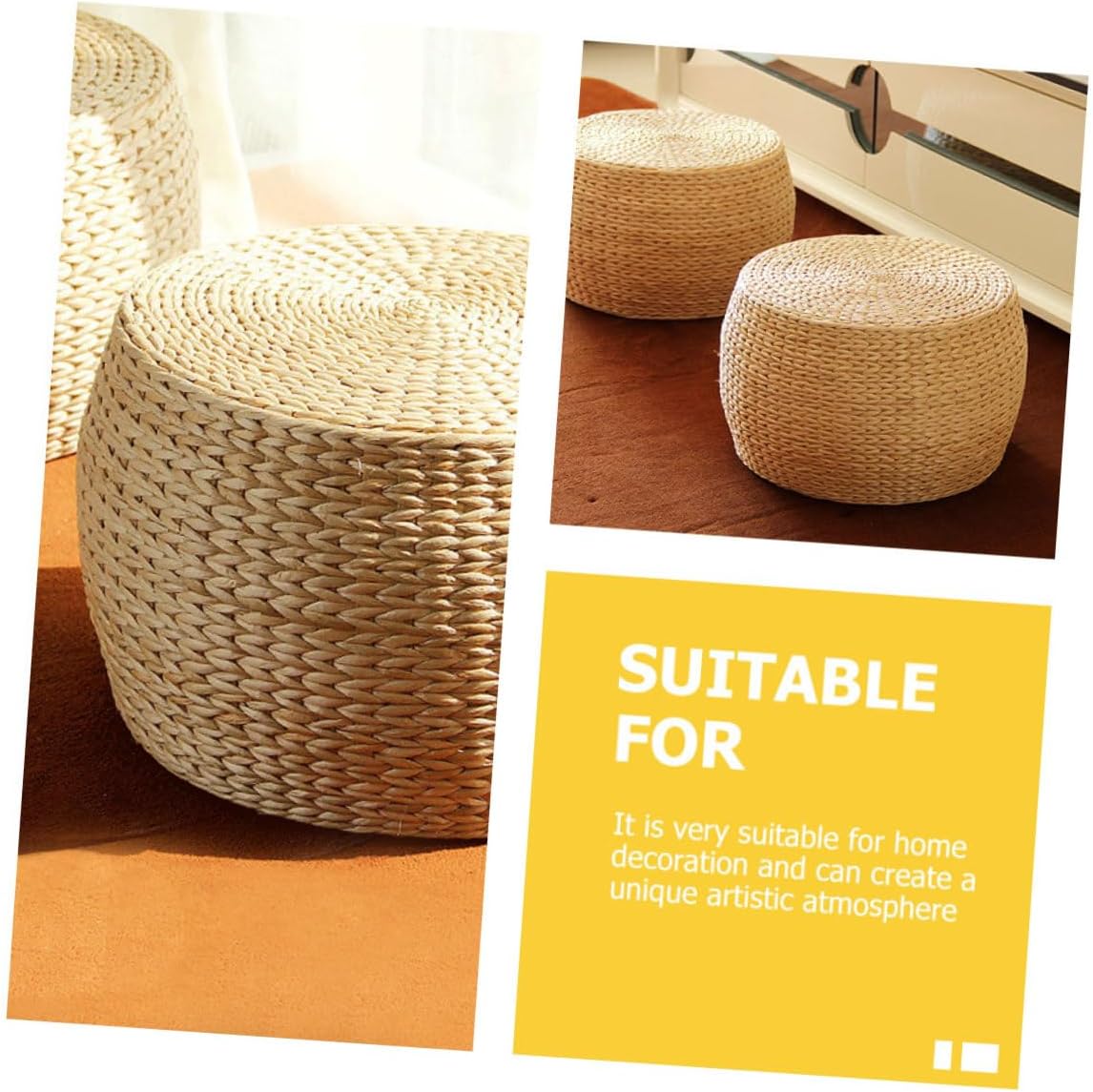 Package List 1 x stool Features -Color: Khaki small -Material: Rattan Household Stool -Size: About 31.00X31.00X22.00cm/12.18X12.18X8.65inch Non-slip Stool -Wide range of application, strong practicability, can bring much convenience to your life Round footstool. -The round stool has a simple and elegant shape, which can easily match home decoration Non-slip Footstool. -The inside is made of high-class and , which is sofa stool. -You can also use this stool to help reach high places to get things Children Anti-skid Stool. -As a must-have for living room, entrance, porch, and even a great stool for entertaining guests foot stools small.Goods DescriptionWoven Footstool Can use it to change shoes before going out.Children Anti-skid Stool Non-slip design, not easy to break and move, and reliable.small Stool Wide use and wide application range.Household Stool This is a stool, which is made from and hard material, easy to clean and use for a long time
