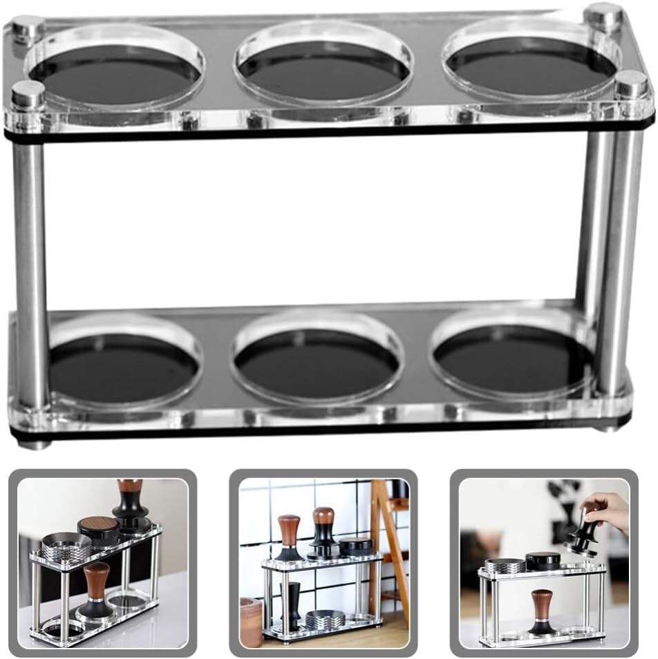 DescriptionIf you are looking for a professional and convenient Coffee Tamper storage rack, then your search is over here. That’s because our storage rack can meet your need. Adopted of reliable stainless steel, acrylic material, it is practical and durable for long time use.Features-Color:Black-Material:Stainless steel, acrylic-Size:23.00X12.50X7.70cm/9.04X4.91X3.03in- Note: with 51/53/58mm storage slot- Made of stable materials, reliable and durable, with excellent texture. The perfect storage rack for your home.- Lightweight and compact size, is easy to carry and store. Suitable for home, apartment, coffee shop and restaurant.- The storage rack with fine workmanship can be used at ease. Not easy to deform, which brings you of convenience.- The unique design and craftsmanship ensure its popularity and practicality.- By using this tamper holder, you can keep your tamper, distributor, and handle neatly in place.- Color: Black.- Size: 23.00X12.50X7.70CM.Package Including1 x storage rack