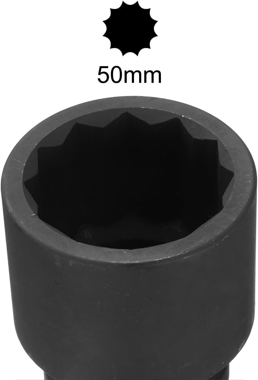 * Made of chrome-moly steel construction for strength and durability.* To prevent rust and corrosion, the black phosphate finish absorbs and retains oil, repelling moisture.* 12-point opening is suitable for double hex (12-sided), hex and square fasteners, can grab fasteners quickly at multiple angles.* To prevent round-off under stress, it grips the flat sides of fastener heads instead of the corners.* The through-hole at the drive end locks on the tang of drivers or impact wrenches, so it won't fall off or stick on the fastener head.* Widely used in DIY hand-making, household maintenance, and most general repairs.Specifications:* Socket Size: 24mm* Drive Size: 1-inch* Total Length: 80mm / 3.15-inch* Material: Chrome-Molybdenum Steel (CR-MO)* Finish: Black Phosphate* Color: BlackPackage Content:* 1 x Impact Socket