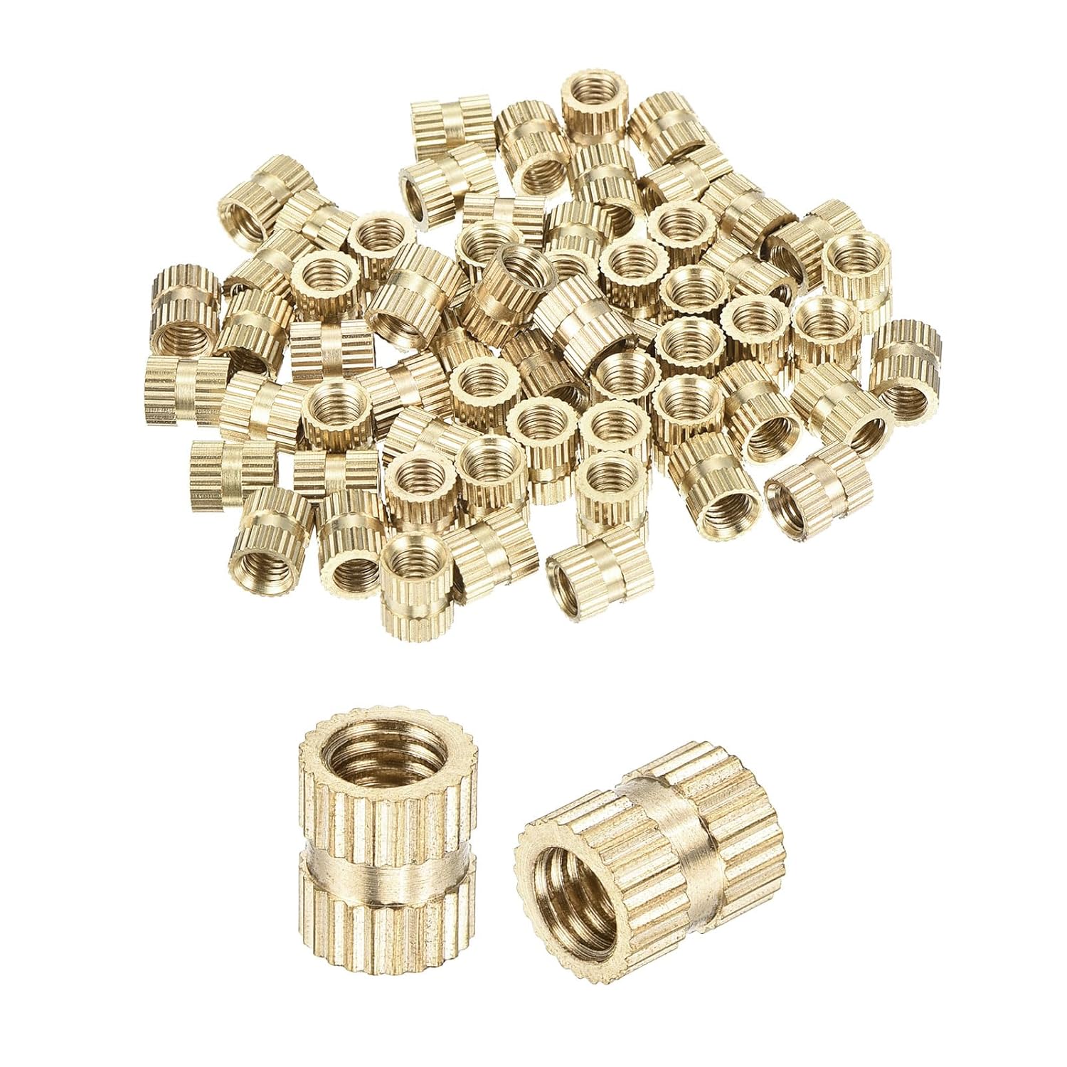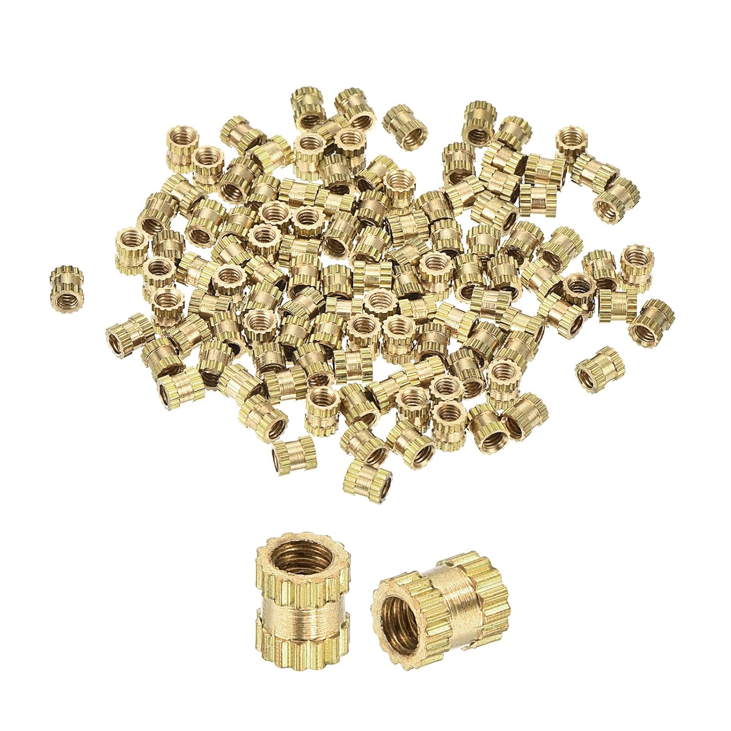 Description:Material - Our 3D printing nuts are made of brass material, with strong wear resistance, fine workmanship, beautiful appearance, corrosion resistance, heat resistance, high low-temperature strength, good mechanical properties, and strong and durable. You can use them for a long time.Design - Our nut inserts are designed with a cylindrical style for easy handling. The rounded strip design has a high profile and better load-bearing surface, ensuring a secure hold and evenly distributing the load. The unique groove knurling texture will not scratch your precious 3D printed parts; the smaller diameter at the front end of the nut allows it to be inserted precisely into the 3D printed hole; the angled thread knurling increases torque resistance for a secure hold.Easy to Install - These knurled nuts can be easily installed into the tapered holes of the target printer by heating or injection molding. Very convenient to use.Wide Application - These nut inserts can be inserted into various thermo plastics such as PLA, PETG, ABS, PP, PC, PA, etc. They provide a reliable and durable solution for installation on 3D printers, electric molding machines, electric injection molding, automotive plastic housings, or laptop plastic housings.Specification:Material: BrassColor: BrassThread Size: M1.4Outer Diameter: 2.3mm / 0.09"Pitch: 0.3mmTotal Length: 2.3mm / 0.09"Package Content: 200pcs x Knurled Insert Nuts