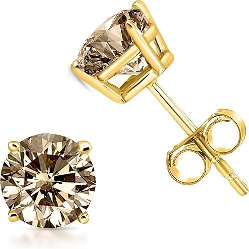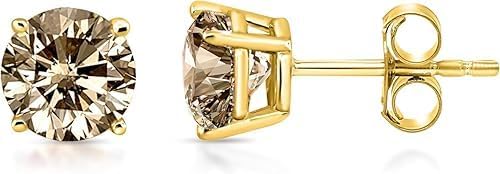 Elevate your jewelry collection with these exquisite 2.00 carat round-cut chocolate stud earrings. Crafted in sterling silver with a luxurious 14K yellow gold finish, these push-back earrings showcase lab-created gemstones in a classic prong setting. The timeless design makes these studs perfect for both everyday wear and special occasions like anniversaries. The secure push-back closure ensures your precious earrings stay firmly in place throughout the day. These versatile earrings complement any outfit while adding a touch of sophistication to your look. Made in India with premium 925 sterling silver, these studs strike the perfect balance between elegance and durability. The chocolate-hued stones catch and reflect light beautifully, drawing attention to their brilliant cut and superior craftsmanship.