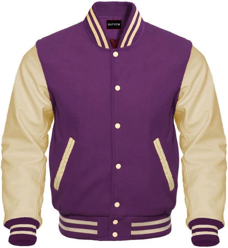The Classic Varsity Jacket is Crafted in a Superior Quality Wool Body and Top Quality Cowhide Leather Sleeves.Colours: All possible colours are available.Size: XS-3XL*Polyester Quilted Lining, Keeping you Warm, even During the Coldest Days.*Plastic Coated Metal Buttons on Front.Features:A Fashionable and stylish eye-catching jacket made from high quality material, designed and created with the highest attention to details.We are original manufacturer of Jackets.✔*Brand New Varsity Jacket✔*Made by highest quality wool and real leather✔*100% Polyester Laser Lining✔*Fasten at the front with button✔*Front pocket with 2 inner pockets and 1 mobile pocketSIZE GUIDE:IMPORTANT NOTE TO SELECT CORRECT SIZE:Please Select 6 to 8 inch Bigger Chest size than your Actual/Natural Chest size for Exact/Perfect Fitting.For example If your Natural/Actual Chest is 35 to 36 inch you should select Size "2XS" from our size chart which Chest size is: 43 inches, second example if your Natural/Actual Chest is: 42 to 43 inch then you should select size: "Large" from our size chart which Chest size is: 51 inch, same method Customers can use for other sizes . Customers can ask us for help to select for correct size if have any confusion.For Sizing Info. Please check the listing image.
