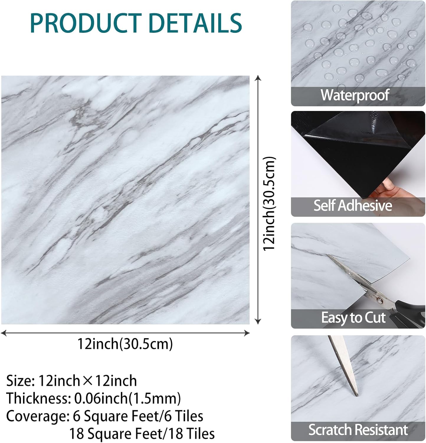 | Color | Grey/White Marble |