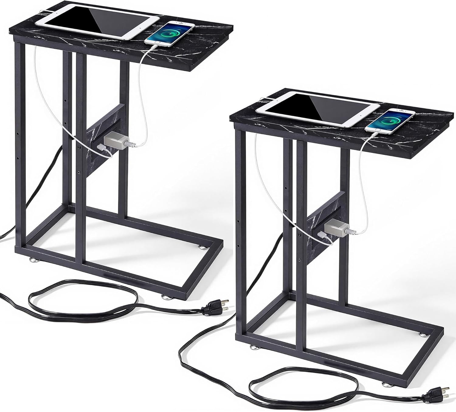 ◆VECELO C-shaped End Side Table: Ideal for Storage Organization Durable ConstructionWith Charging Station & Power OutletsDecorative AppealProfessional Brand Service◆Specifications: Color: Brown/Gold/Black/Black Marble Dimension: 19" D x 11" W x 24" H [Please check carefully about this table size] Compact C-shaped End Table: Manufactured MDF Board and Charge StationVersatile Use Table: be used as a nightstand, end table, side table, bedside tableAdjustable feet: Keep stable on the uneven floor and anti-scratches Video for Easy Assembly: Assenbly video has been uploaded for help VECELO Brand Guarantee: Any problems about our product, please contact us.◆Package Includes: ★1 x C-shaped End Table ★1 x Instruction (clear assembly instruction, please search) ★1 x Assembly Kit◆Tips: ✔ Please read the instructions carefully before assembly. ✔Ensure all parts and screws are firmly attached before use. ✔For set of 2, maybe the parcels were sent separately. If you haven't found another package, please kindly wait 2 more days. Once the 2-Day-Waiting does not work, please contact our support for help immediately.