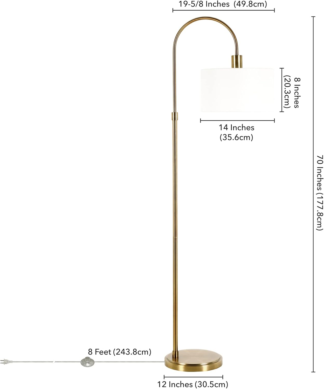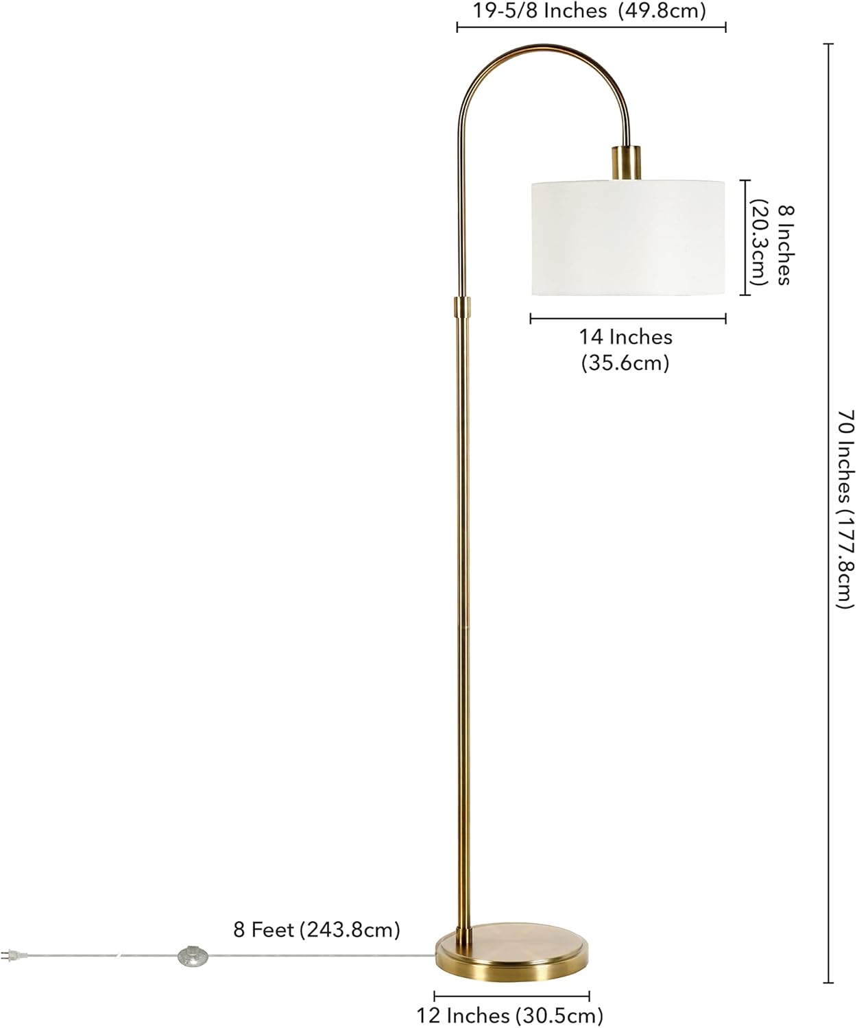 Introducing the Henn&Hart 70" Transitional Floor Lamp, where modern minimalism meets timeless elegance. This eye-catching lamp is designed to be a stunning statement piece, effortlessly elevating the style of any room it graces. Its graceful arc sweeps upward to a crisp white drum shade, creating a sophisticated silhouette defined by warm, inviting lines. The hand-applied finish on the sturdy, round metal base provides a rich texture and ensures steadfast stability. Perfect for casting a soft, ambient glow over your living room conversation area, providing focused light for office tasks, or creating a serene reading nook in your bedroom, this lamp is the epitome of form meeting function. Illuminate your space with style and sophistication.