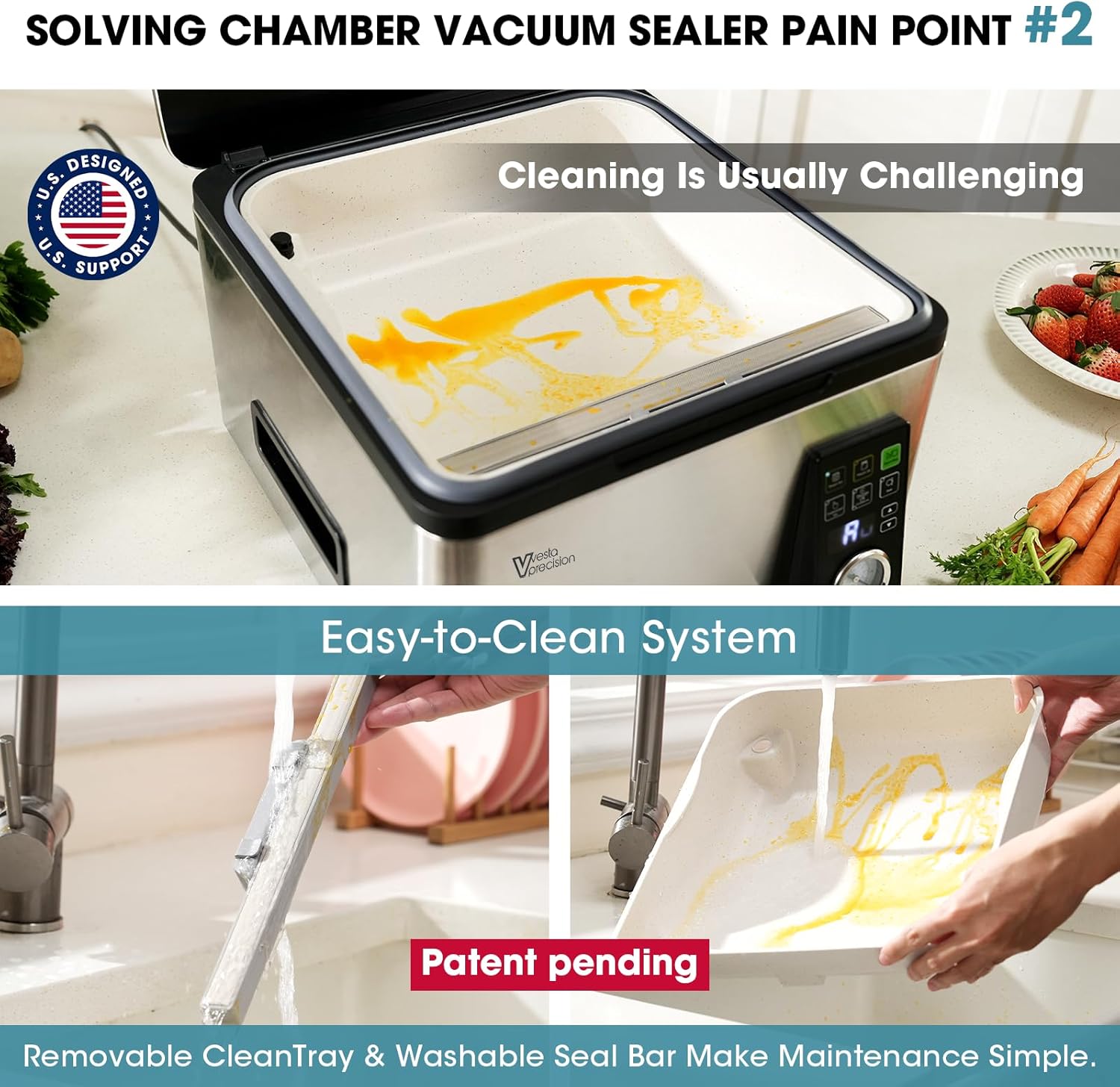 | Included Components | Chamber Vacuum Sealer 1 unit, CleanTray 1 pc, Seal bar 2 pcs, Flat vac bag 10 pcs, Filler plate 1 pc, Mason jar sealing kit 1 set, Vacuum hose 1 pc, Power cord 1 pc |