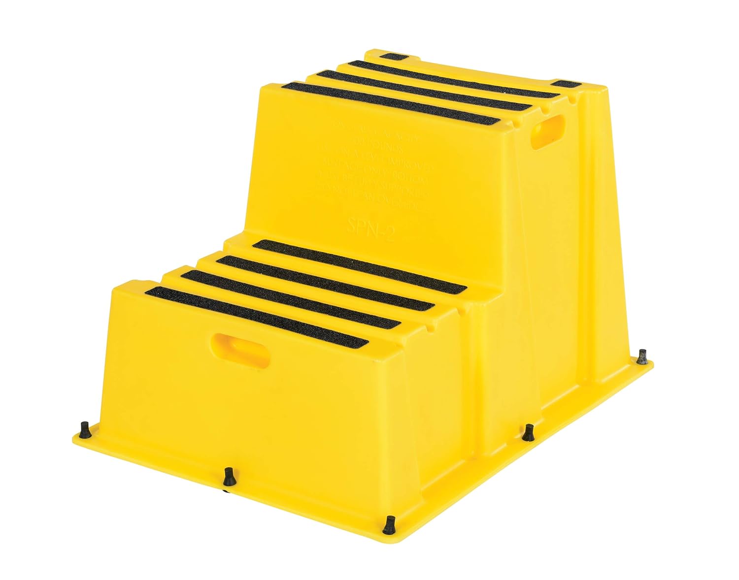 A poly step stool is a great asset for on the go or in a permanent setting. A lightweight design with front and side cutout handles, allow the user to easily transfer the stool to a preferred spot. The taped step surfaces ensure safe footing while traversing up and down the steps. Steps can be nested to minimize footprint when not in use.