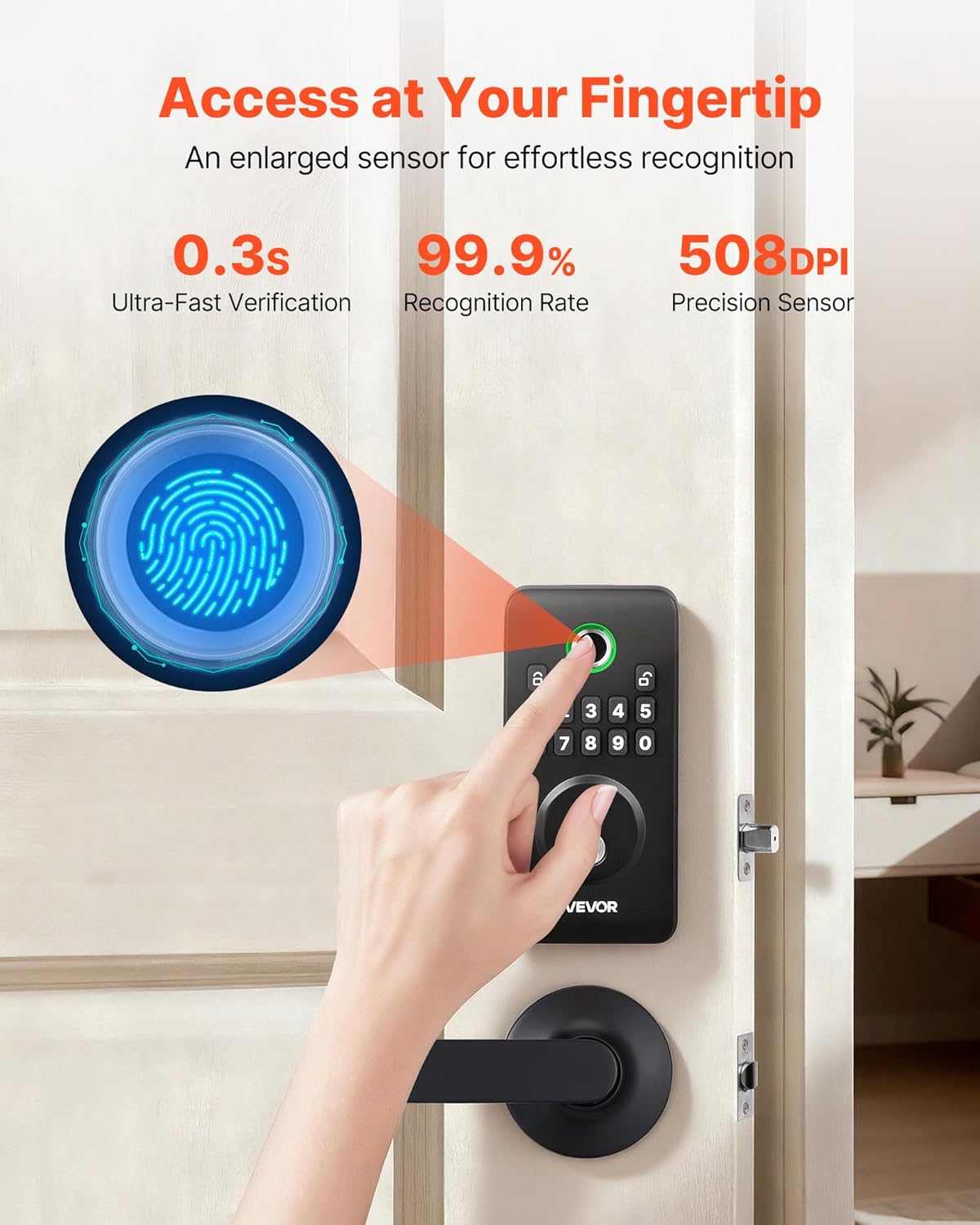 | Item Type Name | Electronic Biometric Deadbolt Keyless Entry Door Lock with Handle, Pioneering Easy-Grip Design, Auto Locking, One-Time Code, Anti-Peeking Password, Matte Black |