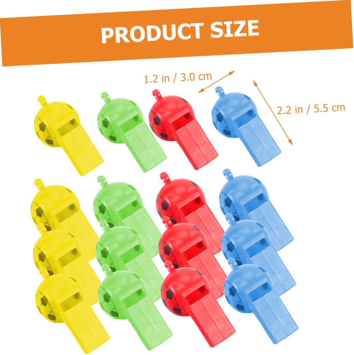 Package List 200 x soccer whistles Characteristics - Size:5.50X3.00X3.00cm/2.16X1.18X1.18in sports referee whistle - Material:Plastic cheering whistle - ColorAssorted Color outdoor racing whistle - Made with and sturdy plastic material, more durable than other whistles hanging whistle pendant. - Durable and . Suitable for all weather use, cold or rainy and can be your accessory sports whistle. - Can't crack or break, very whistles to carry in case of emergency whistle. - These whistles are great for referees, training, teachers, survival, emergency, school, gym, etc referee whistle. - You can use it yourself or share it with your families and friends with enough quantities sports race whistle.Goods Descriptionplastic whistle The whistle is made of plastic materials, and with hanging lanyard.whistle for sports This whistle has crisp sound, which is suitable for referees, coaches, training, instructors, sports, teachers, lifeguards, , survival, emergency, herding, training bird or dog, etc