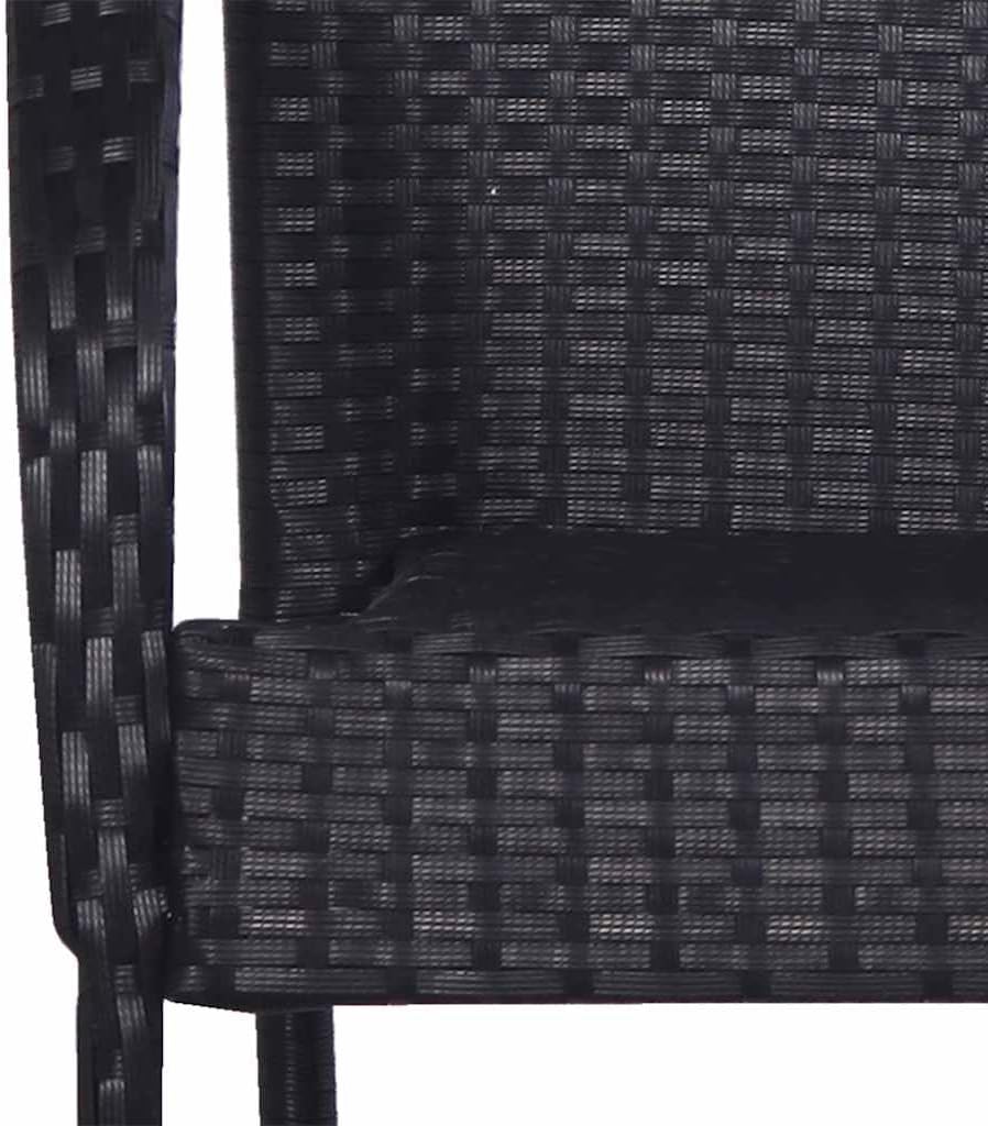 Add a touch of contemporary style to your garden, patio or terrace with these poly rattan dining chairs!These stacking patio chairs are made of water-resistant PE rattan, making them hardwearing, easy to clean, and suitable for daily outdoor use. The outdoor chairs have a powder-coated steel frame, which makes them sturdy and stable. The outdoor chairs are lightweight and can be stacked to save space when not in use.Color: BlackMaterial: PE rattan, powder-coated steelDimensions: 21.9″ x 21.1″ x 37.4″ (W x D x H)Seat width: 13.4″Seat depth: 16.9″Seat height from the ground: 17.3″Armrest height from the ground: 25.2″Assembly required: YesDelivery contains:6 x Dining chair