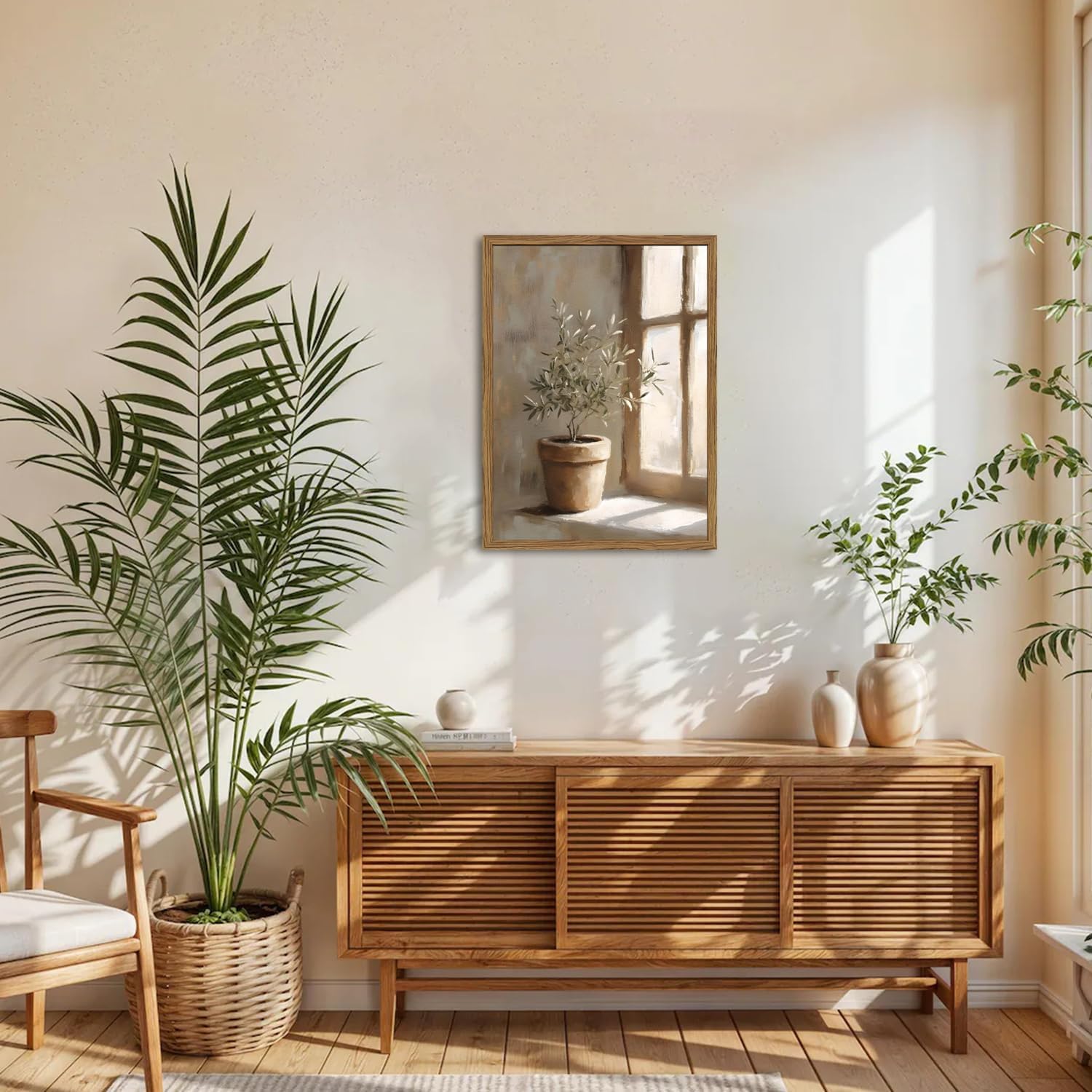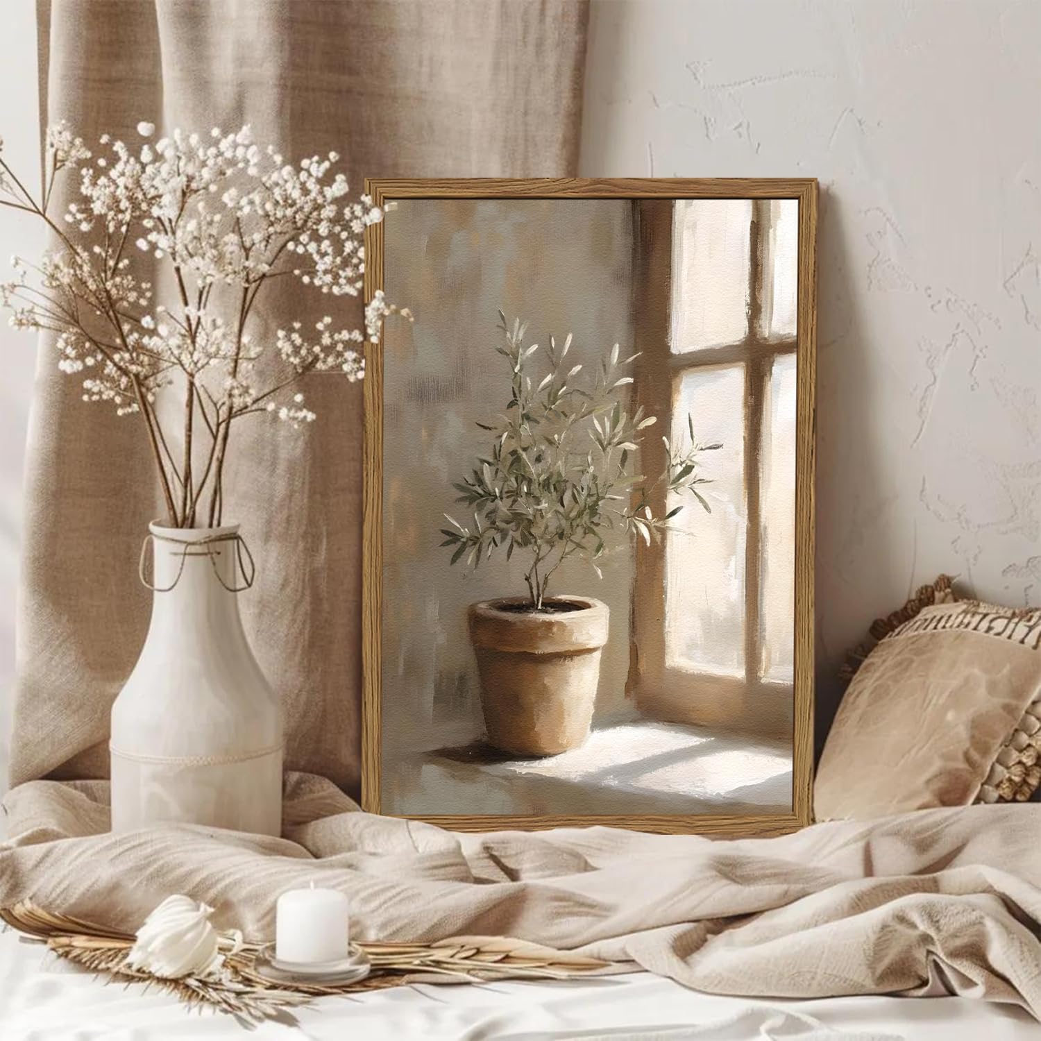 This vintage olive tree wall decor, inspired by rustic plants, brings natural warmth and rustic elegance to your home. The olive tree symbolizes peace and resilience, making this botanical artwork an ideal choice for farmhouse and nature-style interiors. Crafted with a textured sandstone inspired surface, this rustic botanical wall art delivers clear details and long lasting color stability. The artwork is mounted securely on a sturdy wood frame, providing reliable structure and a refined finished look. The framed design arrives ready to hang, making display simple and effortless. Measuring 16x24 inches, this framed olive tree painting is well suited for a variety of spaces. It works beautifully in living rooms where it adds natural warmth, in bedrooms where it creates a peaceful and relaxed mood, or in dining areas hallways and entryways that benefit from subtle botanical accents. This vintage olive tree wall decor blends seamlessly with farmhouse rustic cottage and traditional home styles. Its sandstone texture effect and muted retro color palette pair naturally with wood furniture walls and earthy decorative elements, creating a cohesive and inviting interior. This plant wall hanging is more than just a simple decoration; it embodies a connection with nature and a slow-paced lifestyle. It brings visual depth and tranquility to the home, becoming a timeless accent. This framed olive tree wall art also makes a thoughtful gift for those who appreciate rustic decor botanical themes and nature inspired design. Ideal for housewarmings birthdays holidays or seasonal refreshes, it adds lasting charm and organic elegance to any living space.