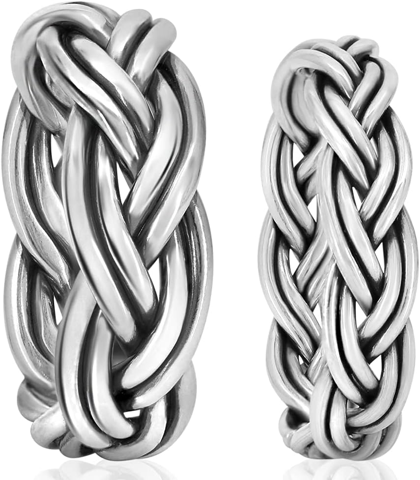 BRAIDED RINGSImpressive high-quality braided rings made of solid 925 sterling silver.PRODUCT SPECIFICATIONSProduct ID: 11-0967-421Metal Purity: 925 Sterling SilverWidth: 5mm. *We also have an 8mm width, you can find it in our store.Weight: 0.12 - 0.16 oz / 3.5g - 4.5g. It could be a minor difference in the ring weight that depends on the ring size.Perfectly suitable for men and women.Includes VY Jewelry pouch that makes it an excellent gift.Size range from 6 to 15Didn't find your size? Contact us and get an update when your size arrived.******************************The quality and excellent design of this ring can be seen immediately when you open the package.VY Jewelry works to create top-quality fine jewelry that allows you to reveal the sense of uniqueness in your personality and feel comfortable and confident with it.If you have any questions, Please contact us; we will do our best to help.