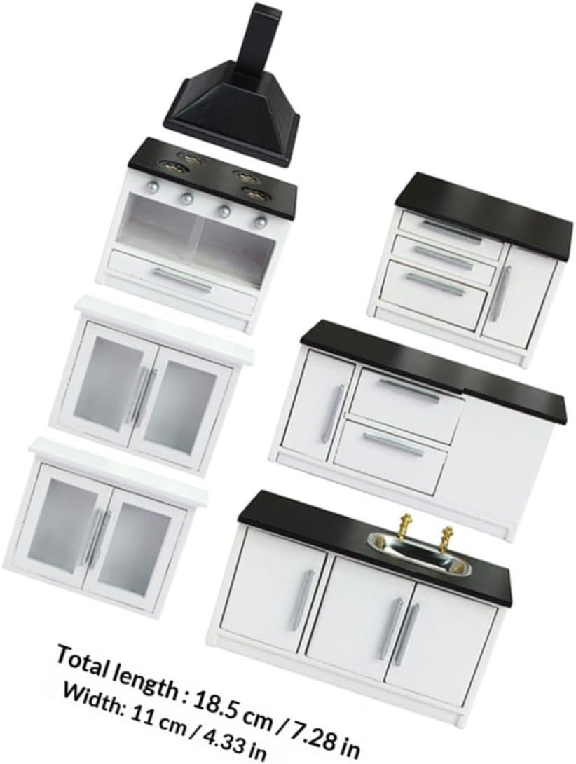 Package List 1 x Mimi Cooking Bench 1 x Mimi Mimi Long Plane Table 1 x Mimi Short Plane Table 2 x Mini Hanging Cabinets 1 Ventilator Features - Short Plane Table Size: About 8.4x5x6.1cm/3.3x1.97x2.4in - Water Channel Size: About 12.4x5x6.1cm/4.88x1.97x2.4in - Hanging Cabinet Size: About 8.9x3x6.3cm/3.5x1.18x2.48in - Color: Black -Product Info:Wooden mini furniture - Material: Wood - Long Plane Table Size: About 12.7x5x6.1cm/5x1.97x2.4in - Kitchen Ventilator Size: About 7x4.5x6.2cm/2.76x1.77x2.44in - Cooking Bench Size: About 8.9x3x6.3cm/3.5x1.18x2.48in - It is made of good wood material, fine workmanship ensure the practicality and durability. - Great decor for micro sense, mini house, desktop decor, handmade Mini Wooden Furniture. - Can bring uniqueness to your mini house to make it look like a real house Doll House Kitchenette. - It can be used for mini house decoration to make your mini house look more realistic and beautiful Mini House Furniture Decor. - Features the delicate workmanship and special shape make it very lifelike Mini House Accessory.Goods DescriptionMini Furniture These are mini house furniture models, which are made by wood material, durable and decorative for use.Mini House Ornament Specially designed for mini house decoration, it can be also used as the photography prop