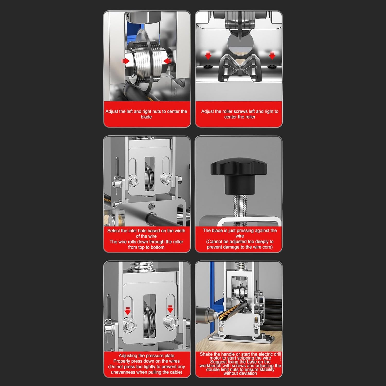 Specification: Item Type: Manual Or Drill Powered Wire Stripper Material: Iron Stripping Diameter: Approx. 1 to 21mm / Approx. 0.04 to 0.83in How to Use: Place the wire in the corresponding position of the machine after obtaining the product. Use a manual or electric wire stripper to strip the wire. Package List: 1 x Wire Stripper 1 x Hand Crank Handle 4 x Screw 1 x Round Blade 2 x Wrench Note: Please note that the blade structure is random. 1. Stripper Machine: Say goodbye to the frustrating stripping experience and welcome the convenience and reliability of this stripper machine. Its body allows you to see accurately what is happening during the stripping process, while its non deformable structure ensures durability for years to come. 2. Electric Manual Wire Stripper: This wire stripper has three stripping holes and adjustable blades, capable of handling wires with diameters ranging from 1 to 21mm. It is ideal for removing insulation from hard skins, soft skins, multicore wires, single strand wires, and more. 3. Wire Peeler with Deep Grooves: Our wire stripper features deep grooves and textured rollers to keep the wire stable and prevent deviation or slippage during the stripping process. 4. Manual or Drill Powered Stripper: Our wire stripper can be operated manually with a crank handle or connected to a power drill for easier wire stripping. 5. Adjustable Blade Stripper: The wire stripper is suitable for wires with diameters from 1 to 21mm and is made of iron material, ensuring efficient stripping performance.