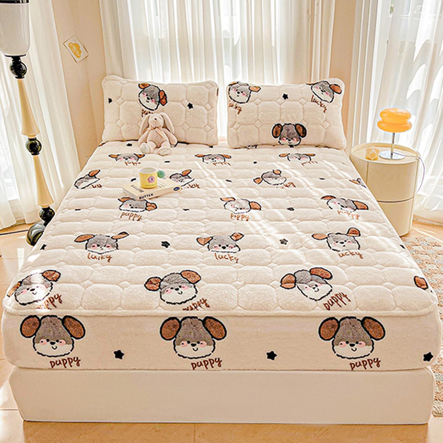 Comfortable and soft milk fleece winter fitted sheetLie on itLike taking a nap in the sunSkin-friendly and comfortableGive yourself a new sleeping experience this winterFabric: Milk velvet fabricFeatures: Warm and comfortablePrinting and dyeing process: reactive printing and dyeingWhether it can be machine washed: Can be machine washedCan accommodate mattress thickness: 5-28cm(2-11in)Color: pink,white,brown,blue,gray,A,B,C,D,E,F,GSize:90*200cm(35*79in)120*200cm(47*79in)150*200cm(59*79in)180*200cm(71*79in)200*220cm(79*87in)pillowcase(48*74cm)(19*29in)Package includes:Mattress protector*1 (excluding mattress and pillowcase)Select "Pillowcase*2" and you will get pillowcase*2 (mattress protector not included)notes:1. Please allow 1-3cm error due to manual measurement.2. Due to different monitors, there may be slight color differences. We hope you can understand.