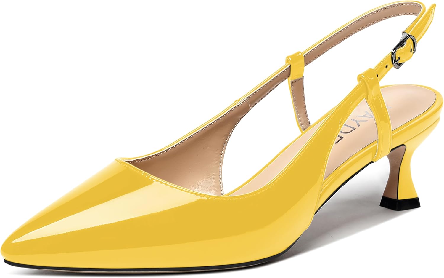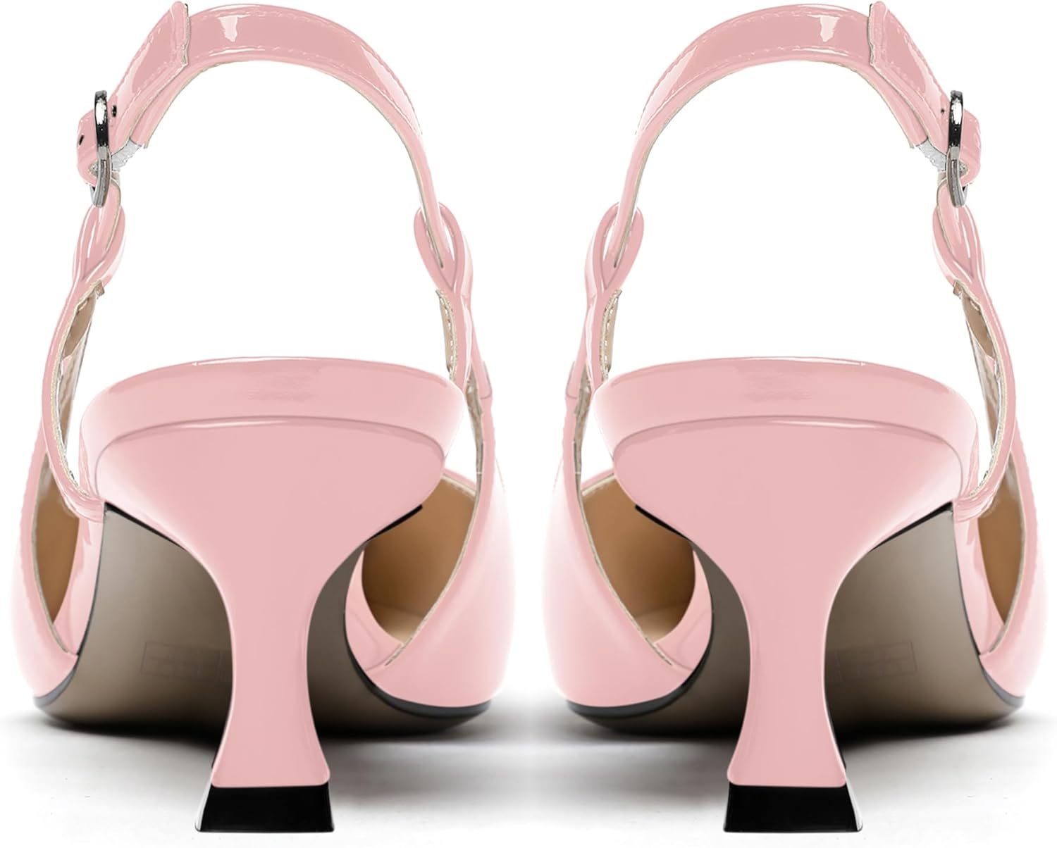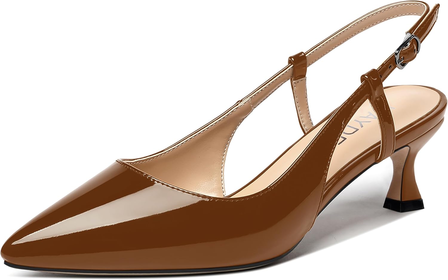 WAYDERNS Women's Slingback Kitten Heels Low Heel Pointed Toe Patent Leather Pumps Comfortable Wedding Shopping Work 2 Inch Dress Shoes