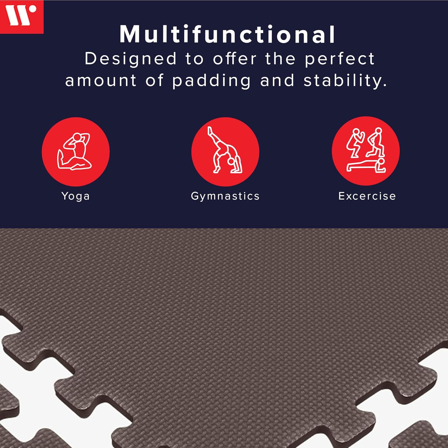 We Sell Mats Multipurpose Foam Tiles provide a cost-effective solution for extra padding needed throughout your home. Our interlocking EVA foam floor mats fit seamlessly in home gyms and workout areas, kid playrooms, daycare and classroom flooring, office flooring and mud and laundry rooms. It can also be used for extra padding when standing by the kitchen sink, working in a salon, support for older dogs or cats or use beneath tents and sleeping bags while outdoor camping. We Sell Mats floor tiles are lead-free, latex-free and phthalate-free, providing a non-toxic floor padding solution for added cushion and peace of mind in playrooms for infants, toddlers and kids of all ages. Each tile comes with 2 border pieces—a straight edge and a corner edge. Depending on the size of the surface, the borders can be easily removed and attached to other mats of the same style. There will be enough borders to accommodate a standard rectangular assembly (For example: 6 tiles in a 2x3 assembly, 12 tiles in a 3x4 assembly). Note: If you’re building a long walkway or runway that is one tile wide, you will likely run out of straight border pieces. Since the borders are packaged with the tiles themselves the only way to get additional border pieces is to order more tiles. Our Recommendations: We Sell Mats Multipurpose foam tiles are intended for indoor use only and not recommended for use over carpet. Although the flooring will not retain shoe imprints, high heels will leave permanent punctures. While these are intended for light bodyweight workouts at home, it’s not designed to serve as padding for heavy equipment in professional grade gyms. If using for vigorous exercise, use floor tape to ensure secure placement. Color shades may vary slightly between each tile.