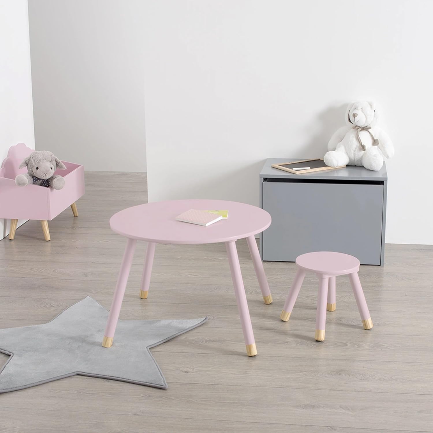 This beautiful children's table impresses with its versatile design that matches any decor. Ideal for activities such as reading or playing. The dimensions of 60 x 60 x 43 cm make them perfect for children. It is made of durable wood and its attractive pink colour gives it a charming and cheerful touch. Perfect for creating a cosy and functional children's room.