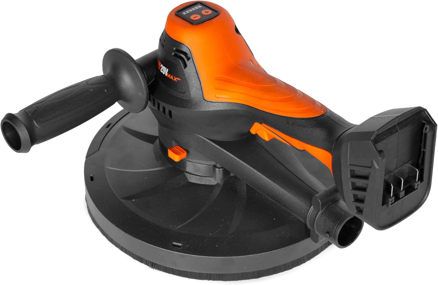 Remember when you had the smoothest drywall in town? The WEN 20V Brushless Handheld Drywall Sander makes sanding drywall easier than ever. Powered by a 20V Lithium battery pack (not included), this tool can operate quietly and efficiently without cords, and the brushless motor delivers a longer runtime and greater longevity. The sander is cross-compatible with the entire WEN 20V Max Lithium-Ion Cordless Power Tool line. The variable speed adjustment can operate between 600 and 1200 RPM, which you can track using the handy LED indicator. And using the last speed memory function, the sander will remember where you left off on your latest project. Switch easily between rough and fine sanding with the stationary and floating sanding pad modes. You’ll be able to handle automatic dust removal with the included dust hose and collection bag, and connecting to a vacuum using the 1-¼” adapter has never been easier. This sander is compatible with the entire DW-series of sandpaper, including models DW60SP, DW80SP, DW120SP, DW150SP, DW180SP, DW240SP, DW400SP. The sander’s packing list includes eight hook-and-loop sanding discs (two 150-grit pieces, two 180-grit pieces, two 240-grit pieces, and two 400-grit pieces). And because it’s a WEN product, your Variable Speed Drywall Sander comes backed by a two-year warranty, a stocked inventory of replacement parts, and a friendly customer helpline, all to make sure you remember WEN.