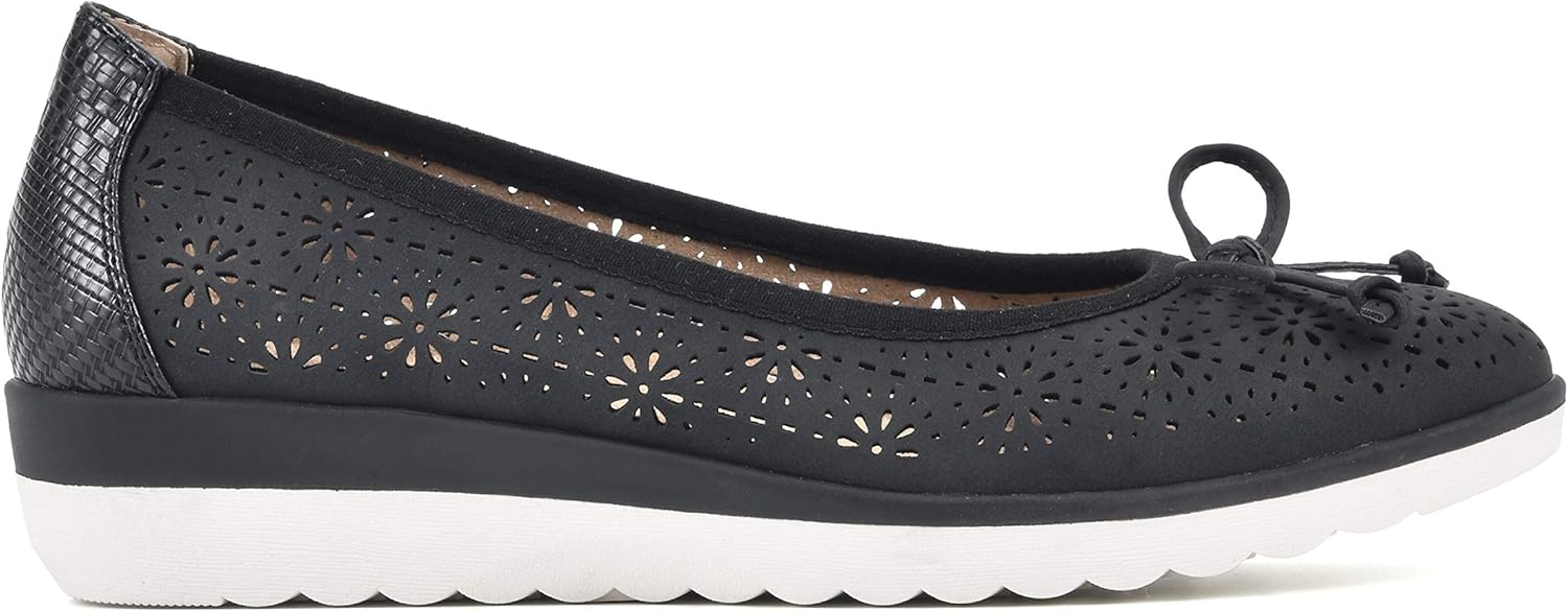 A classic ballet silhouette with a dainty bow and a breathable perforated pattern make the Surprise Flat by White Mountain Shoes a must have for transitional weather dressing. A lightweight, sporty mini-wedge bottom helps keep it casual while giving you a little lift