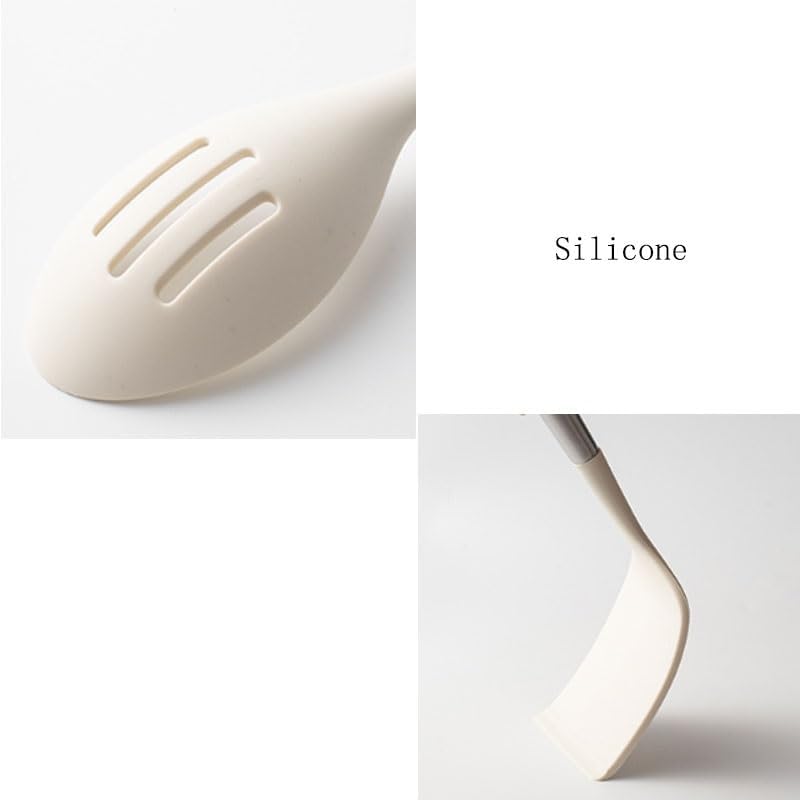`: Spoon and Spatula SetMaterial: Silicone + solid woodSize: As shownColor: As shownFunctions: Cooking, baking.The set includes: Frying spatula, spatula, soup spoon, strainer, etcShoulder bag: Shovel and spoon set * 1 set (excluding display items)Attention:1. Please allow 1-2cm error due to manual measurement. Thank you.2. The actual color of the product may be slightly different from the image shown. Please refer to the actual product.Investing in a handy set of spatulas can significantly enhance the smoothness and enjoyment of cooking.