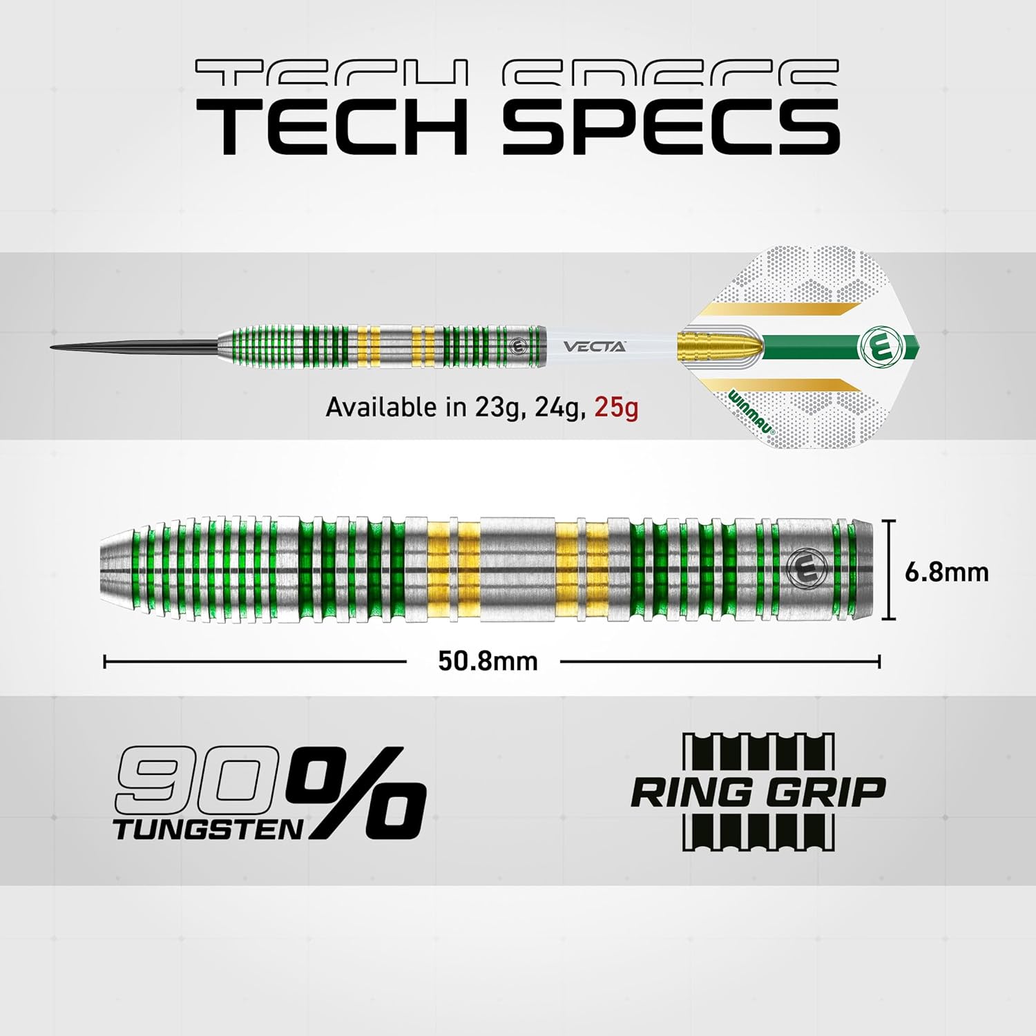 WINMAU Xenon Series 90% Professional Tungsten Darts Set, a premium dart collection designed for players who demand peak performance and precision. Made from 90% tungsten, these darts are meticulously crafted to deliver unrivaled balance, control, and accuracy—every time you step up to the oche to hit your target.Engineered to support the most complex biomechanical movements involved in the game, the Xenon Series is all about delivering the perfect dart. With a finely tuned balance and exceptional flight stability, these darts are made to perform at the highest level. The precision ring grip ensures that every player, from aspiring professionals to seasoned competitors, can throw with complete confidence and control.Available in a range of weights, including 18g Soft Tip and 23g, 24g, and 25g Steel Tip. The Xenon Series accommodates various throwing styles. Each dart is meticulously designed to optimize flight trajectory and maximize scoring potential, helping you elevate your game to the next level.The set comes complete with high-performance dart flights and durable shafts (stems), enhancing the aerodynamic efficiency of your throws for smoother, more consistent flight paths. These high-quality dart accessories ensure that your darts remain in peak condition through extended play.When it comes to professional darts, the WINMAU Xenon Series stands out as a true game-changer. With its precision ring-grip profile, stunning Vetalic coating, and a balance engineered for biomechanical excellence, this set redefines what it means to throw the perfect dart.Trusted by the pros and used by the world's top professionals, stands out as a premium dart set alongside top brands like Red Dragon Darts, delivering precision and control that elevates your game to a professional level.