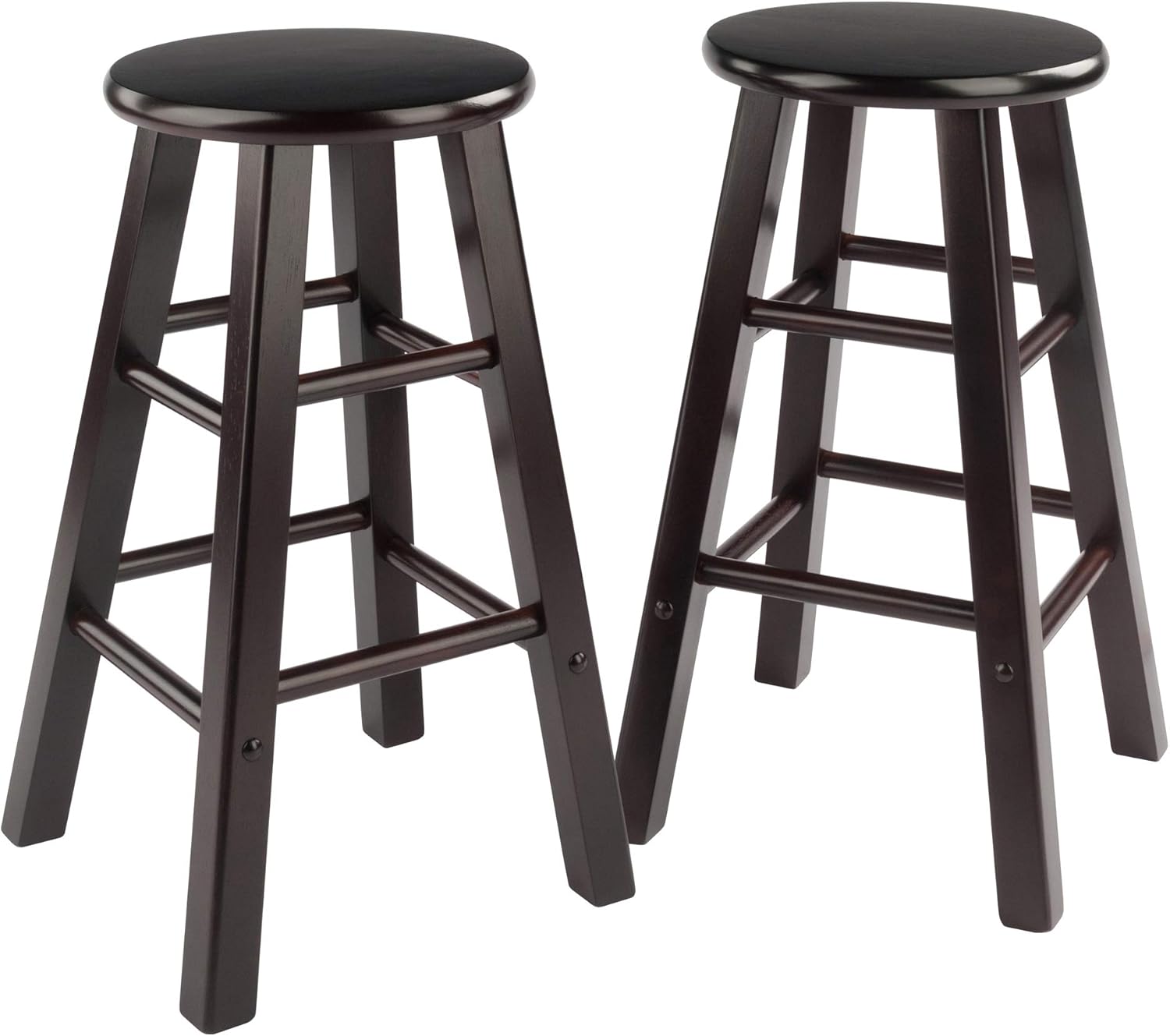 Spruce up your kitchen, breakfast nook, or den with this Winsome Element Counter Stool Set. A sleek, timeless color finish lets this barstool work with any kitchen or dining room aesthetic, while clear instructions and a simple, hassle-free setup let you enjoy these dining chairs right away. These stools are equipped with high and low crossbars for extra stability and use as convenient footrests. The round seats on these chairs provide a generous seating area for comfort even with extended use. The Element Classic Stool is crafted from durable, solid wood using expert furniture construction techniques for long-lasting, comfortable use with a weight capacity of 220 lbs. The 2-piece set conveniently ships in one box that includes the hardware needed for assembly.