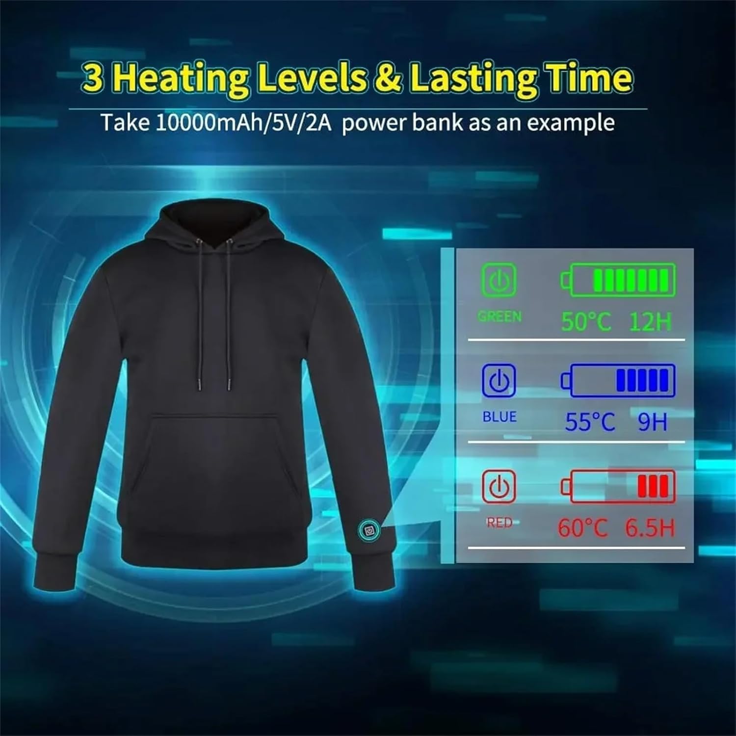 Hello! Welcome to Pucklky store! Have a nice shopping time! We have own factory and cooperate with different suppliers, Aim To provide our customers higher quality products and pleasant shopping experienceProduct Description:Season:WinterMaterial: PolyesterSleeve: Long sleeveStyle: FashionPattern: SolidDecoration: ZipperHeating area: 5 pads Top Heating Season: WinterFit Style: SlimOccasion: CasualFashion design shows your nice taste.Suitable for casual wear.Sweet and beautiful.What you get:1PC Heating thermal top If you have any questions, please feel free to contact us by send email, we will solve it for you in 24 hours.Washing precautions: normal hand wash, machine wash, when the line is closed, the lock is good.Drying in use.Charging precautions: 5V non-inductive voltage (use your charging treasure to charge better heat effect), energy saving and environmental protection,Connect the charging treasure, Press and hold for 3 seconds to charge and heat.