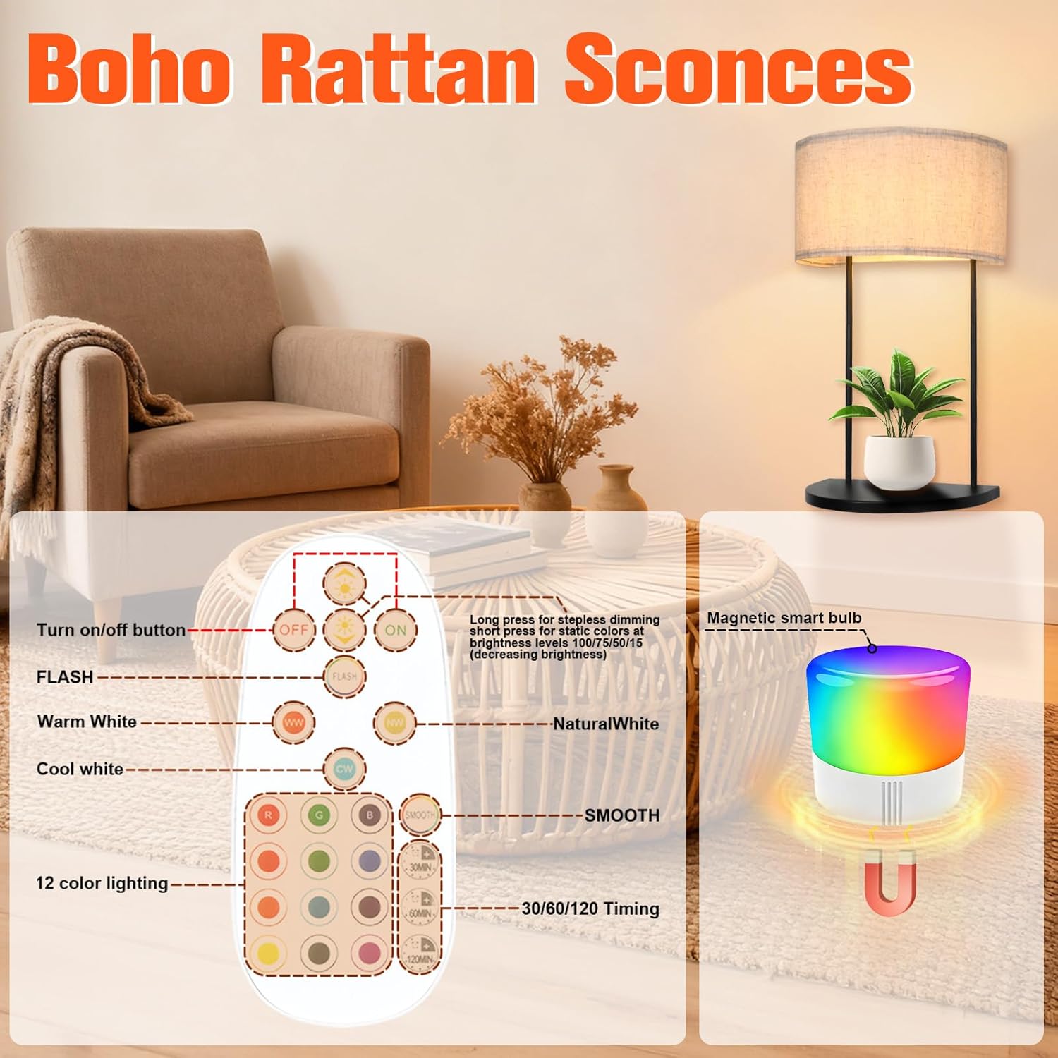 Wireless Wall Sconce with 5000 mAh Rechargeable Magnetic RGB Bulb & Remote Control, Battery Operated Metal Wall Light with Shelf for Bedroom Bedside Table or Living Room Decor