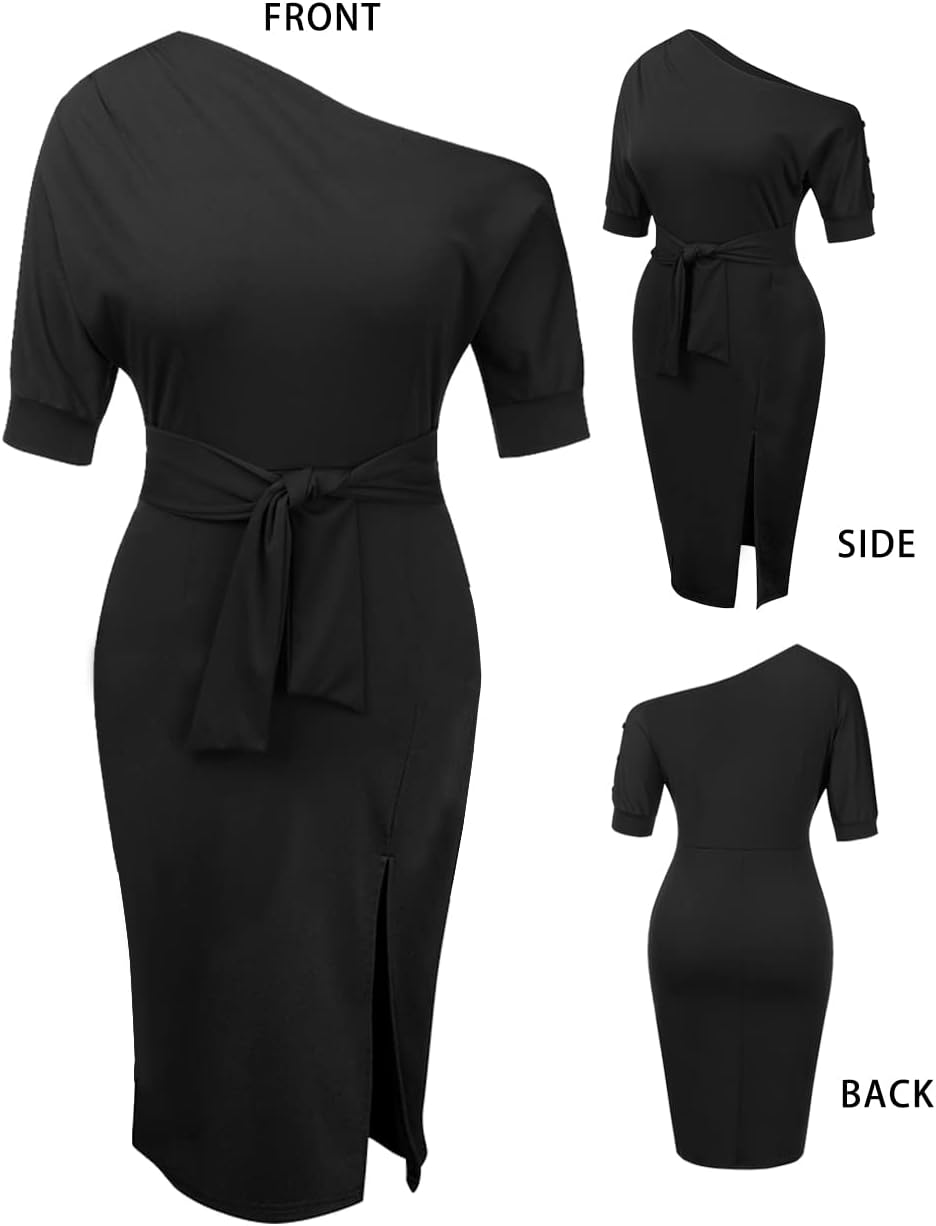 abric Type stretch knit Collar: off-shoulder, one shoulder Occasion: Work, Office, Business gatherings, Cocktail, Parties, Evenings, Night out, Club, Dating, Events, daily etc. Garment Care:Wash Gentle Cold No Bleach Season: Spring, Summer, Autumn,Winter Why choose our dresses? 1) Perfect Cut: Our products had been modified for many times by our professional designer and sample master to meet the standard of perfect cut, and to make a better fit. 2) Suitable Fabric: Our R&D department select the most suitable fabric for every design. Proper fabric for this dress—- gentle stretchy knit but looks well in shape, comfy touch and not see-through. 3) Quality Control System: Every pieces has to be inspected by our QC team before they go out. Enjoy your shopping.