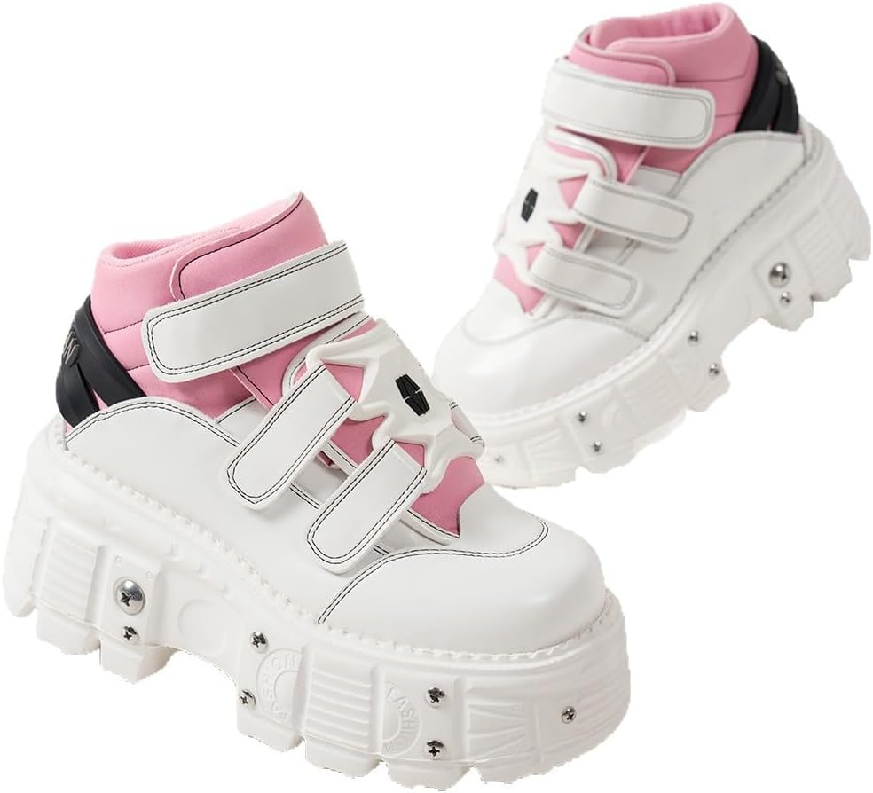 Elevate your style with these Women's Goth Platform Ankle Boots—a bold fusion of punk, goth, and Y2K energy. Built for fashion-forward self-expression, these booties feature a chunky 8CM (3.15in) platform and 7.5CM (2.95in) heel to boost your height while keeping you stable. The striking black-and-white design, paired with adjustable stick loop straps, ensures a secure fit that’s comfortable enough for all-day wear—whether you’re attending a cosplay event, hitting a concert, or simply running errands. Versatility shines: rock them as combat boots with edgy ensembles, as Y2K sneakers for retro vibes, or as gothic statement pieces for a night out. Durable construction and unique stud detailing add individuality, making these booties essential for anyone into emo, punk, or kawaii fashion. Embrace your aesthetic with footwear that blends comfort, style, and fearless attitude.