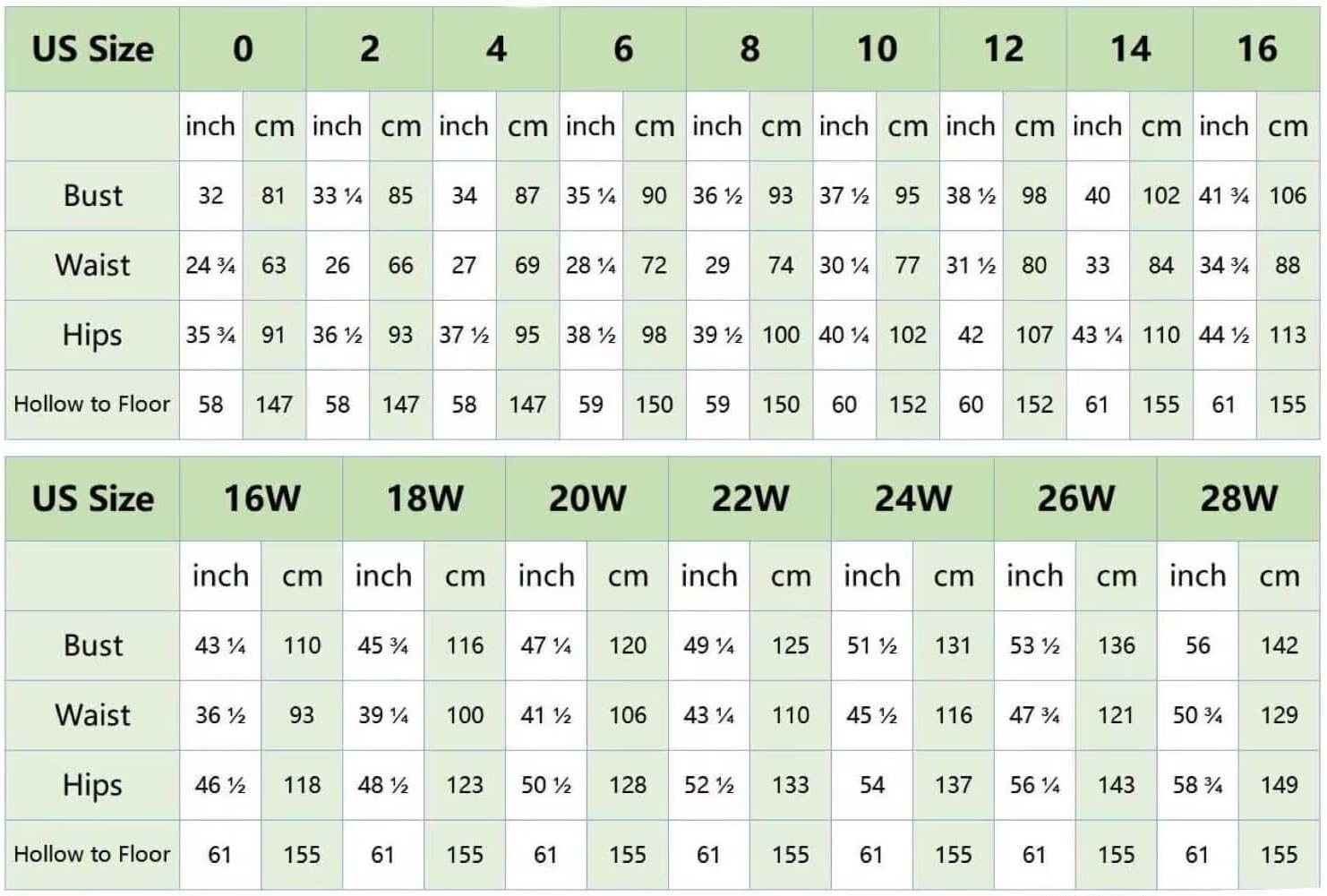 | Item Length Description | Floor Length |