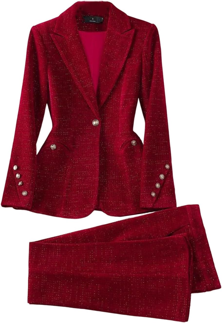 Material: This women's suit set is made of a blended fabric, soft and comfortable, conforming to the body and wrinkle-resistant, providing you with an all-day comfortable wearing experience.Loose Fit: This women's suit set features a three-dimensional cut and wide shoulders for a slimming effect. A stylish lapel adds youthful energy and a modern touch. Pair it with a shirt or sweater for a refined and elegant look.Stylish Design: This women's suit jacket features buttons, long sleeves, a button-down design, buttoned cuffs, a V-neck, a lapel, vents, two pockets, and a faux chest pocket. It comes with pocketed pencil trousers.Occasions: This two-piece women's suit is suitable for autumn, winter, and spring, and for many occasions such as formal occasions, interviews, presentations, business, church, office, meetings, etc. It's also a great choice for casual wear, shopping, dates, Christmas, New Year's, and parties.Sizing Tips: Hand wash or dry clean is recommended. Do not bleach. Hang to dry and iron at medium temperature. Please refer to the size chart before purchasing, or contact us with your chest and waist measurements.