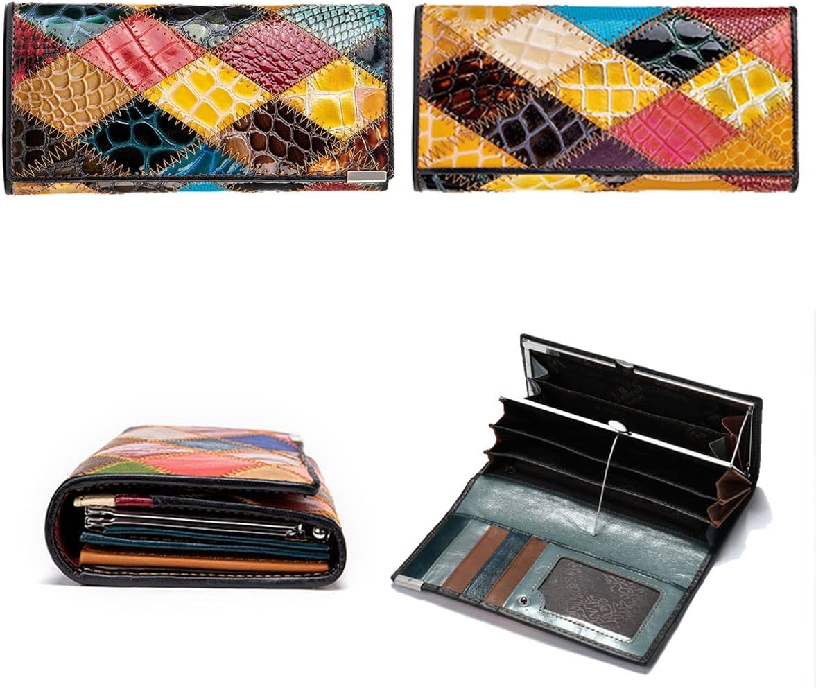 Karoukee Stylish Colorful Cell Phone Clutch Purse Credit Card Holder Large Wallet For Women Ladies ? Made of 100% genuine cow leather, this luxurious women's wallet clutch is vintage stylish in a patchwork design. Random color combinations give each of the wallets a unique and different looking. When you receive it, it will surely surprise you! ? As a large wallet clutch purse, it has large capacity for all your essentials including your cell phone. There are 8 card slots, 5 compartments, a cell phone compartment and a large kisslock pocket. All in all, it's a especially practical casual wallet. ? Not only suitable for work, shopping, dating, party, but also a perfect gift for her on Birthday, Anniversary, Mother's Day,Thanksgiving,Christmas,New year and all special days. Unique Large Wallet / Clutch Purse / Card Holder for Women ? Dimensions: Length:3.54''(9 cm), Width:1''(2.5 cm), Height:8.5''(18.5 cm). ? Material: Oil Wax Cowhide / Patent Cowhide ? Pattern Style: Checkered, Diamond Lattice ? Gender: Ladies, Women. ? Style: Stylish, Unique, Retro ? Closure: Snap, Zipper ? Capacity: 8 Card Slots(include 1 ID window), 6 Compartmemts, 1 Kiss Lock Pocket . ? Package Includes: 1 * Women's Wallet Clutch ? NOTE: The design of the patchwork makes each wallet unique, what you receive may differ from what is shown in the pictures. Karoukee ?Karoukee is committed to designing classic, stylish, elegant, practical women's belt, handbags, messenger bags, wallets, and other accessories. ? We will the quality of each product. If you have any problems with the product, please contact us.