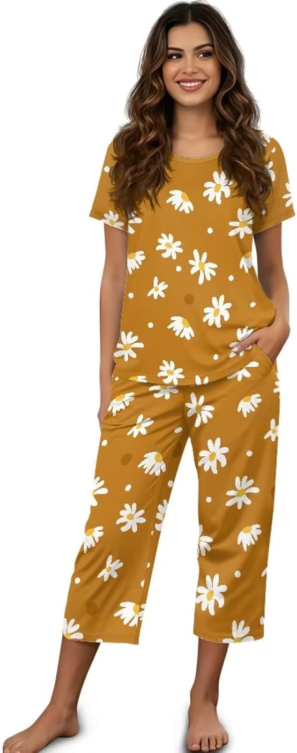 Oamsistay Women's Fashion Pajama Sets Short Sleeve Shirt S-4XL Floral Pajamas Set Soft PJ Loungewear Sleepwear Casual Printed Loungewear Combining casualness with practicality, this set is the ideal choice for warm evenings, lazy weekends, or relaxing days. With breathable fabrics, a chic aesthetic, and thoughtful details, it redefines casual loungewear. Sizes: S / M / L / XL / 2XL / 3XL / SXL Packags: Tops*1 & Long Pants *1 Features: Multi Occasions to Wear: Sleeping, Leisure, Home Wear, Dating, Street, Daily Wear, Walking and Walking the Dog and Vacation etc. Fashion Printed: The prints on the pajamas set are mainly daily themes such as florals, butterflies, hummingbirds, flowers, leaves, dragonflies, cats, dogs, etc.