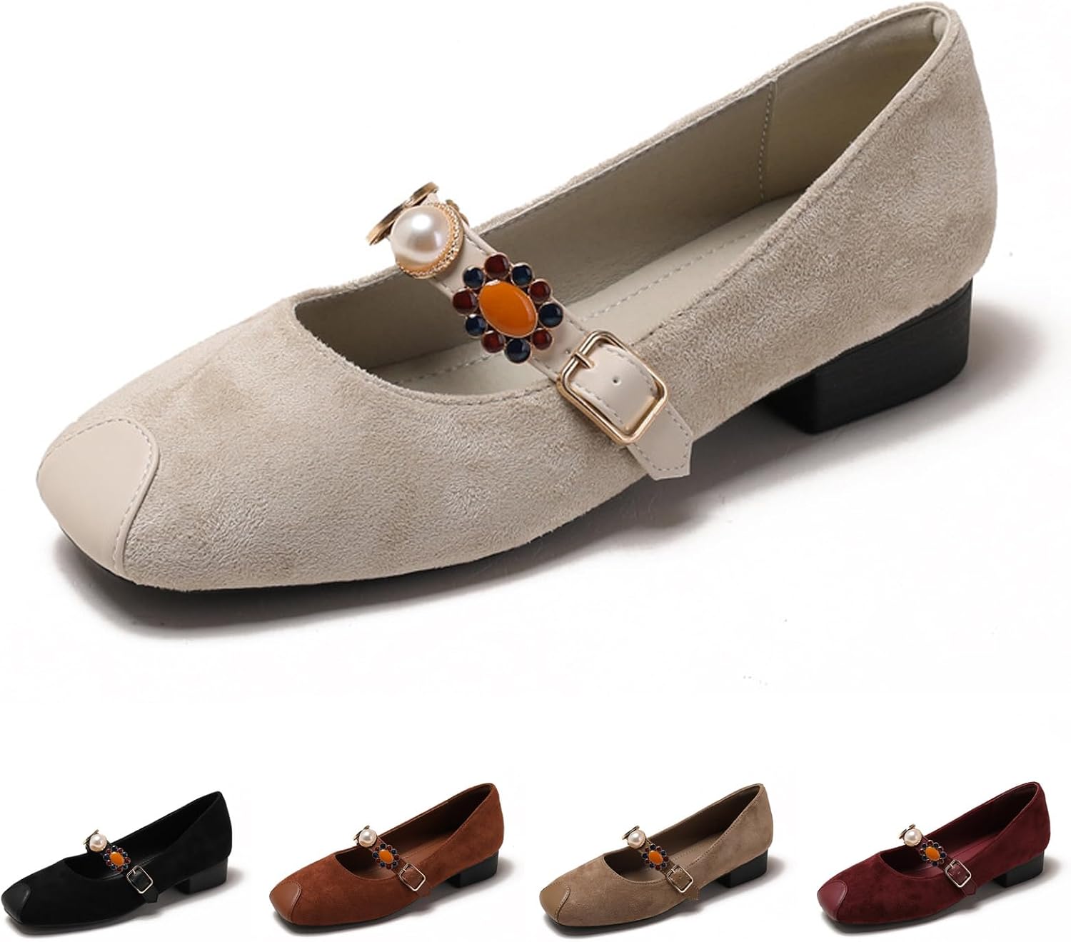 Women's Suede Pearl Strap Low Chunky Heel Mary Jane Pumps Our attention to details sets our product apart.This is a durable shoes,we only use high-quality materials,professional craftsmanship. Colors:Black/Brown/Khaki/Apricot/Red Upper Material:Suede Sole Material: Non-slip TPR Season:Spring,Summer,Fall,Winter Function:Soft,durable and flexible,keeping you steady on various surfaces,walk confidently and safely on slippery surfaces. Occasions:Wedding,party,work,business,street,travel,holiday,dating,daily wear and any occasion etc. Packaging: 1 pair Mary Jane Pumps 1.Before Placing An Order,Please Carefully Measure Your Foot Length And Width,And Then Choose The Correct Size According To Our Size Chart! 2.Due To Different Lighting Displays, There May Be Slight Color Differences. (Thank You For Your Understanding!) 3.When You Receive The Goods And Find Any Damaged Or Lost Parts,Please Contact Us In A Timely Manner, And We Will Handle It As Soon As Possible.We Just Want You To Know That Your Satisfaction Is Always Our Top Priority! 4.The New Shoes May Have The Smell Of Some Items,Which Is The Smell Of The New Product.Please Leave Them In A Well Ventilated Place For A While,And They Will Disappear.