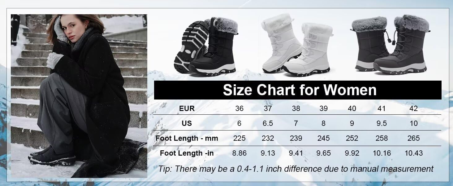Women's Snow Boots - Warm and Waterproof Winter Boots with Adjustable Rope Design for Secure Fit