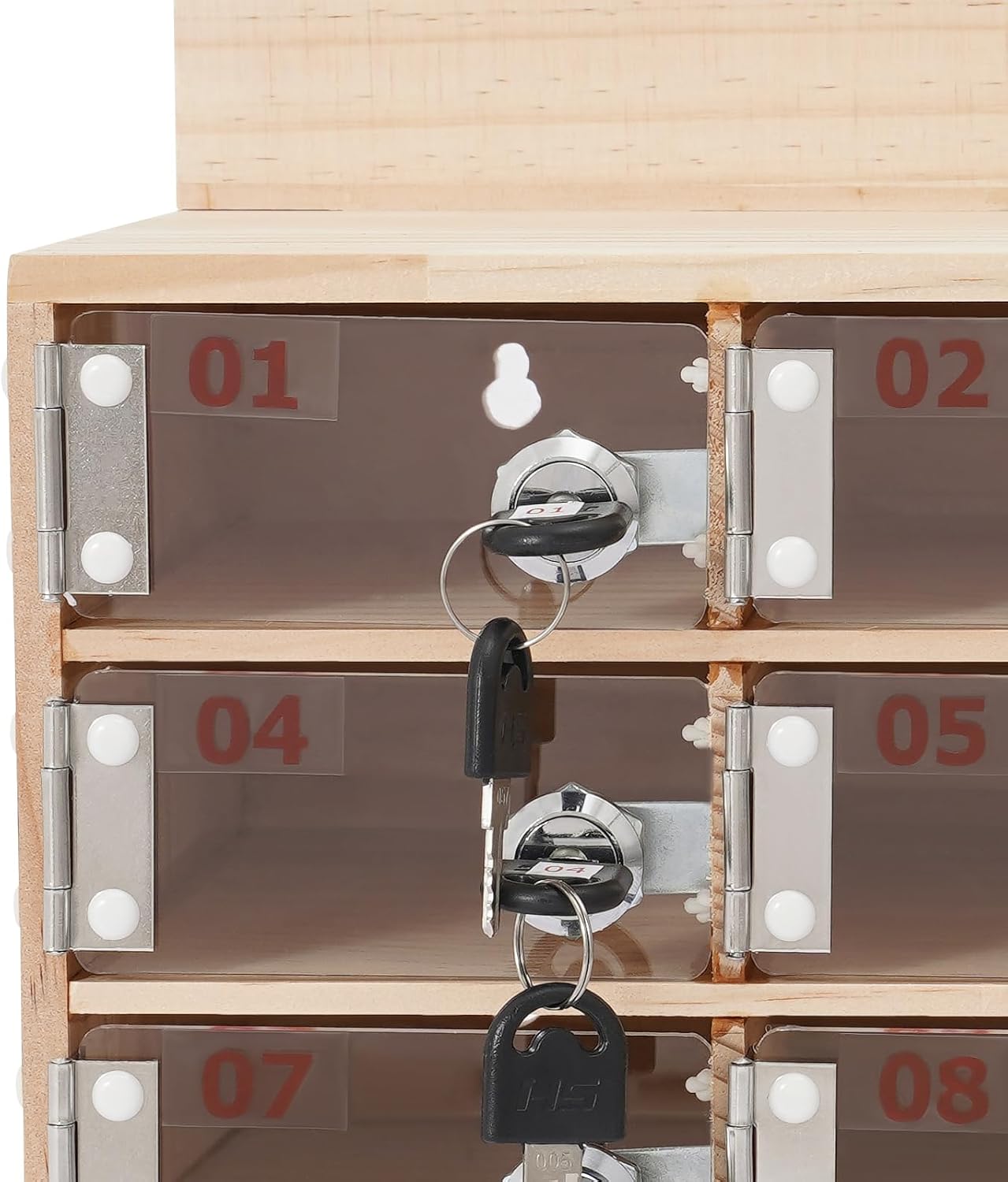 Introducing our versatile Cell Phone Locker Box, designed to enhance organization and security in various settings such as offices, schools, and gyms. This storage cabinet provides a practical solution for keeping personal belongings safe while ensuring a clutter-free environment. **Key Features:** - **Sturdy Hinges:** Crafted with durable hinges that are resistant to deformation, allowing for smooth opening and closing. This feature ensures that your locker box remains functional and reliable for daily use. - **Customizable Top Signage:** Easily personalize the top signage with your company name, logo, or department. This customization not only helps in branding but also adds a professional touch to your workspace. - **Spacious Top Space:** The ample top area is perfect for placing office supplies such as water bottles, pens, or other essentials. This additional storage space makes it convenient to keep your items within reach while maintaining a tidy area. **Specifications:** - **Material:** Made from high-quality acrylic and wood, ensuring durability and a sleek appearance. - **Color Options:** Available in clear and wood color finishes to match various decor styles. - **Design:** Rectangular shape, ideal for wall-mounted or freestanding setups. - **Security:** Features a key opening method for added protection. - **Capacity:** 3 tiers with 9 slots, each measuring 10 x 18 x 5 cm, providing ample room for personal items. **Dimensions:** - **Product Size:** 32.4 x 18.8 x 17.4 cm - **Package Size:** 39 x 26 x 24 cm - **Weight:** Gross weight of 2.6 kg and net weight of 2.47 kg, making it lightweight yet sturdy. **Package Includes:** - 1 Cell Phone Locker Box - 9 Sets of Keys - 1 Top Signage - Installation Accessories Enhance your workplace or recreational area with our Cell Phone Locker Box, merging functionality with a stylish design. Perfect for creating a secure space for personal items, this locker box is an essential addition to any setting wher...