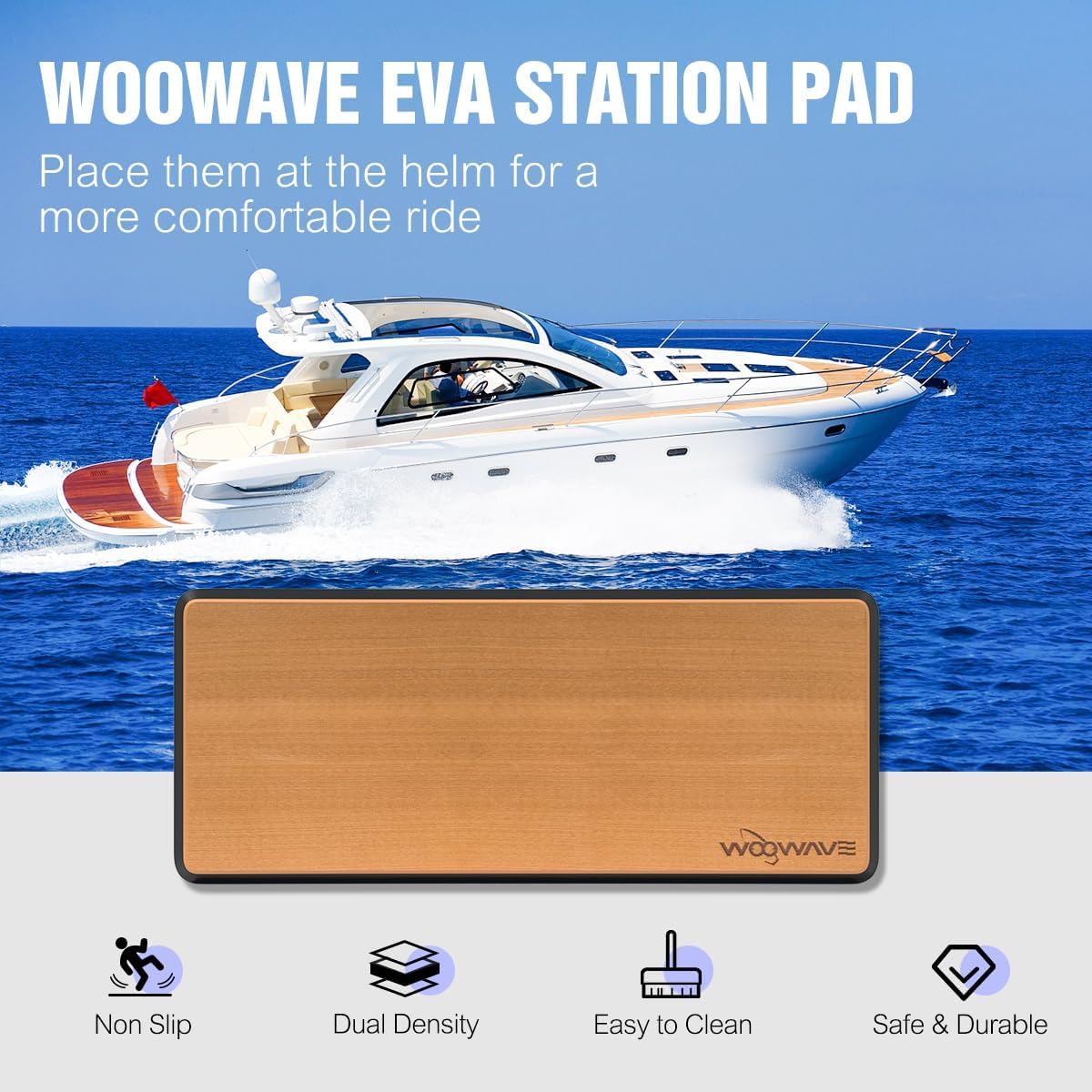 WOOWAVE EVA Helm Station Pad with Premium Adhesive Backing Non Slip Boat Standing Mat 13mm Foam Boat Helm Pad for RV Sea Deck 36 inches X 16 inches
