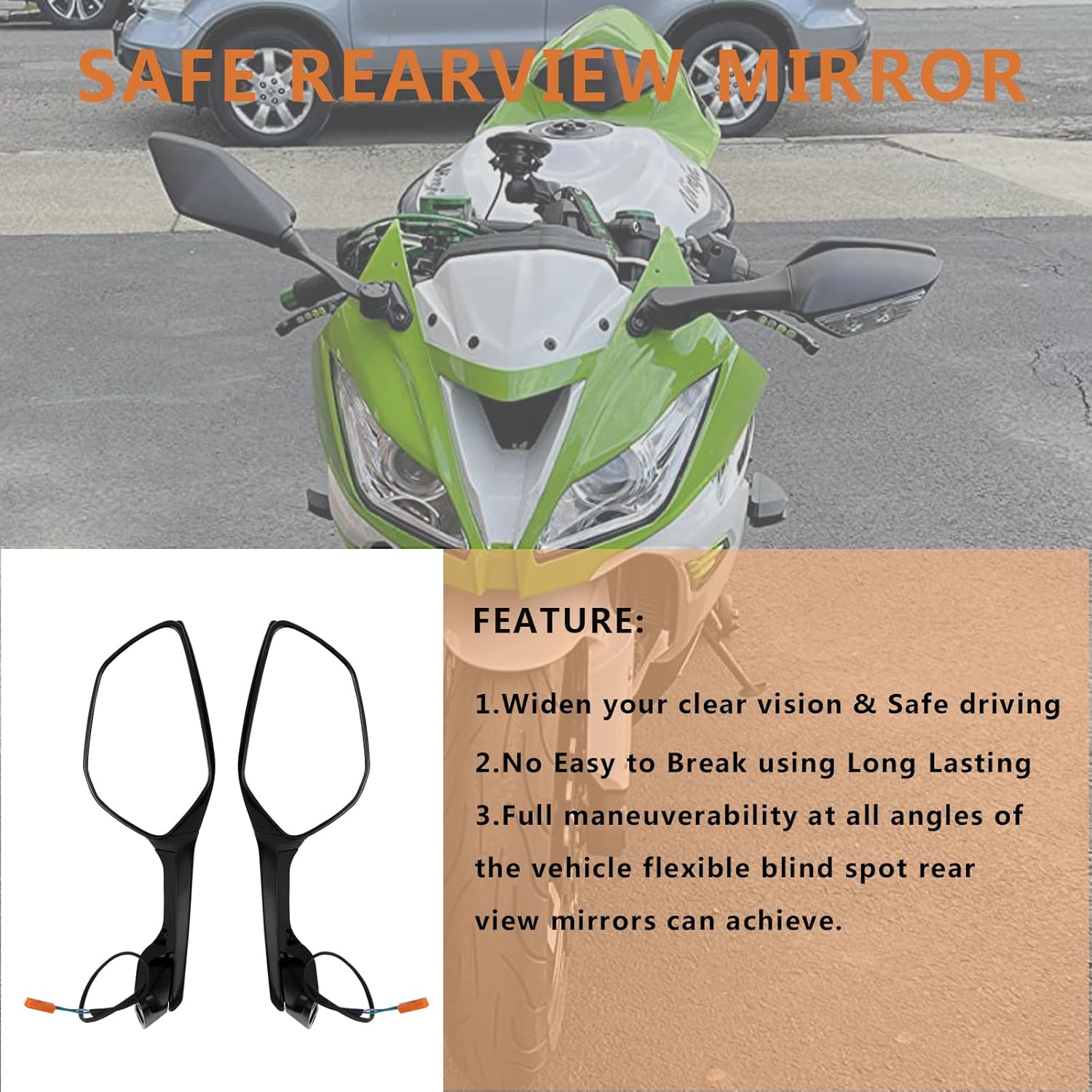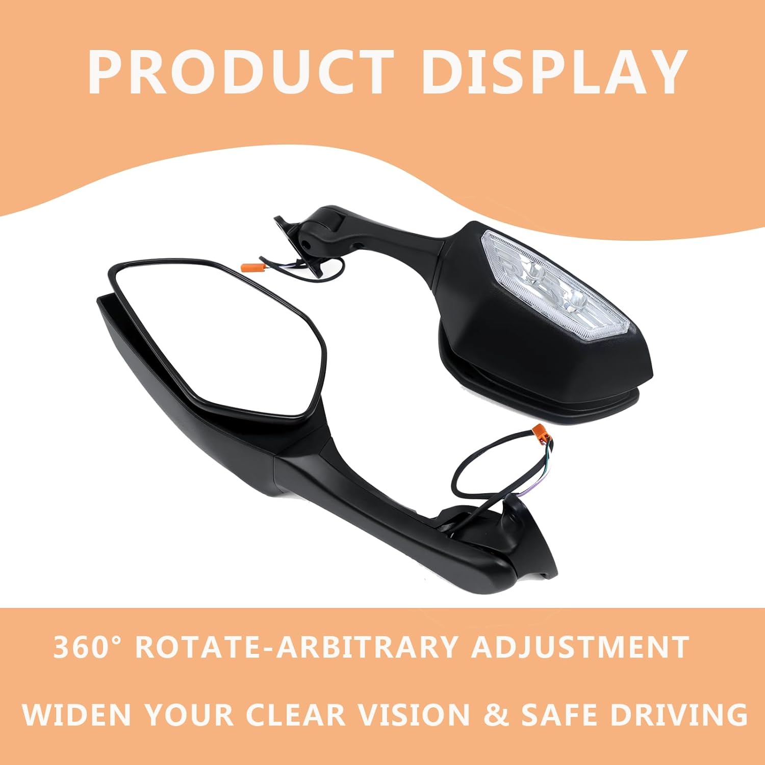 Color: BlackMirror Material: Acrylic GlassShell material: High impact ABS shell-Why we need the Rearview Motorcycle Mirrors?-Widen Your Vision, Clear Vision & Safe Driving.-The convex lens type will offers you a wider vision, clearly catch sight of the rear upcoming vehicles.-No easy to break,using long lasting, adjustable & easy to install.-360° Adjustable mirror angle, up and down, left and right.-Flexible blind spot rearview mirrors can achieve full maneuverability at all angles of the vehicle.