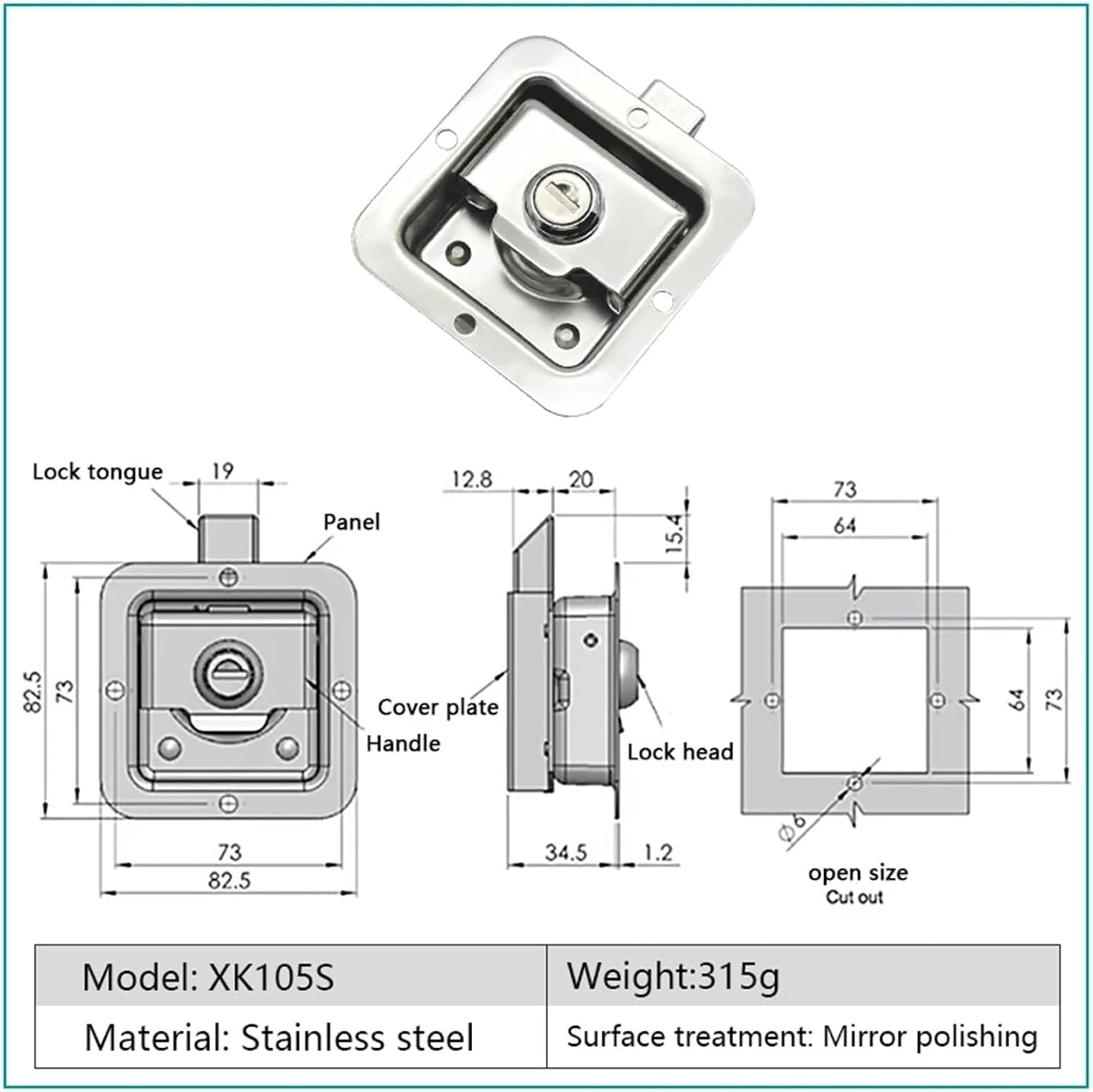 Cabinet LocksXK105 Tool Box Latch Paddle Trailer Rear Semi Body Recessed Handle Truck Door Lock 1Pcs