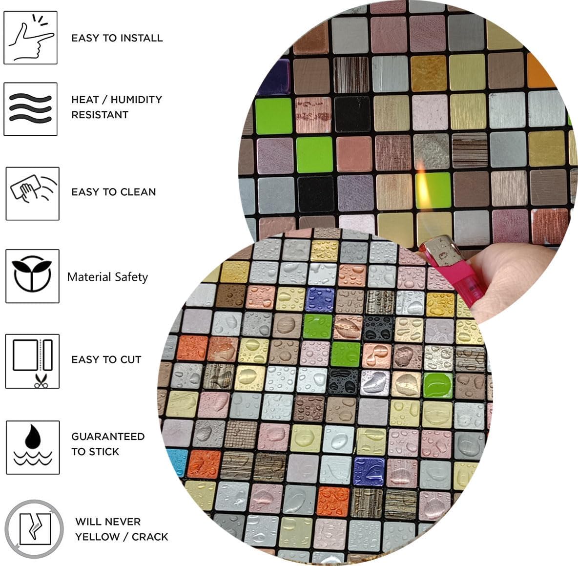 Manufacturer: XUANINY Product Dimensions: 11.81*11.81x0.15 inches Package Dimensions:12.7*12.5*1.1inches Item Weight: 4 pounds Item package quantity: 5 Shape:Square Material: Metal, Aluminum Color: Mixed Color Usage: Interior Wall Decoration Installation: Peel and stick Style: Classic, Modern, Popular, Fashion XUANINY mosaic is suitable for most kinds of indoor decoration, with strong metal texture, Rainbow-colored, wood, stone&marble, stainless steel etc. Easy for installation, easy to wipe and remove the stains on it. You can meet with your warm, cosy, colorful and different feeling for your room, stepping in another refreshed world for your room with the mosaic. Caution: ·Make the wall as clean as possible first before installing,especially the dust and moisture. ·When installing, do not press them hard until you are 100% positively sure the right size for covering in place as our adhesive backing is really sticky. ·Not recommended to use for uneven surface. ·Rough and uneven wall are not suitable for installing our tiles. ·Do not use strong acid and strong alkaline for cleaning. ·Please keep new painted wall dry for 2-3 weeks or more before installing our tiles.